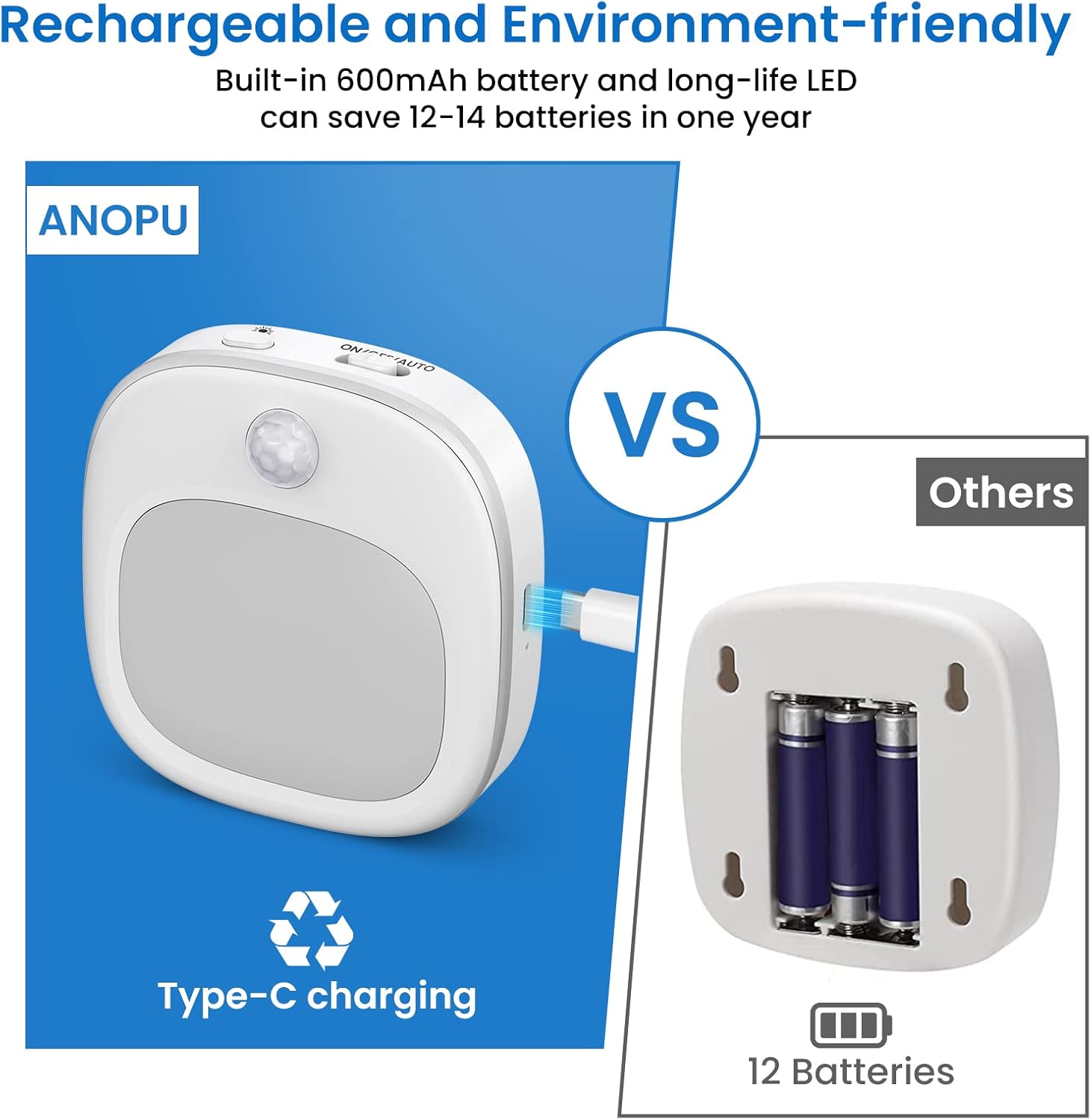☀USB Rechargeable Night Light: Powered by a built-in rechargeable 500mAh battery, these night lights can be easily charged via the included USB Type-C cable, ensuring your space remains well-lit without needing battery replacements.