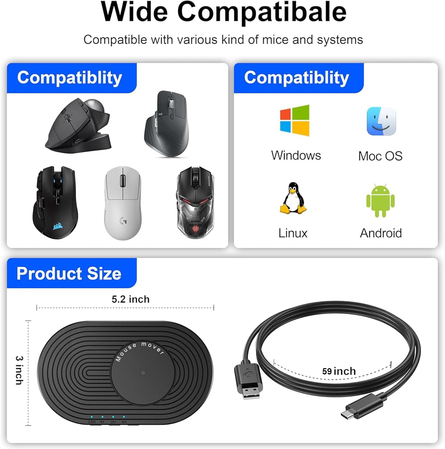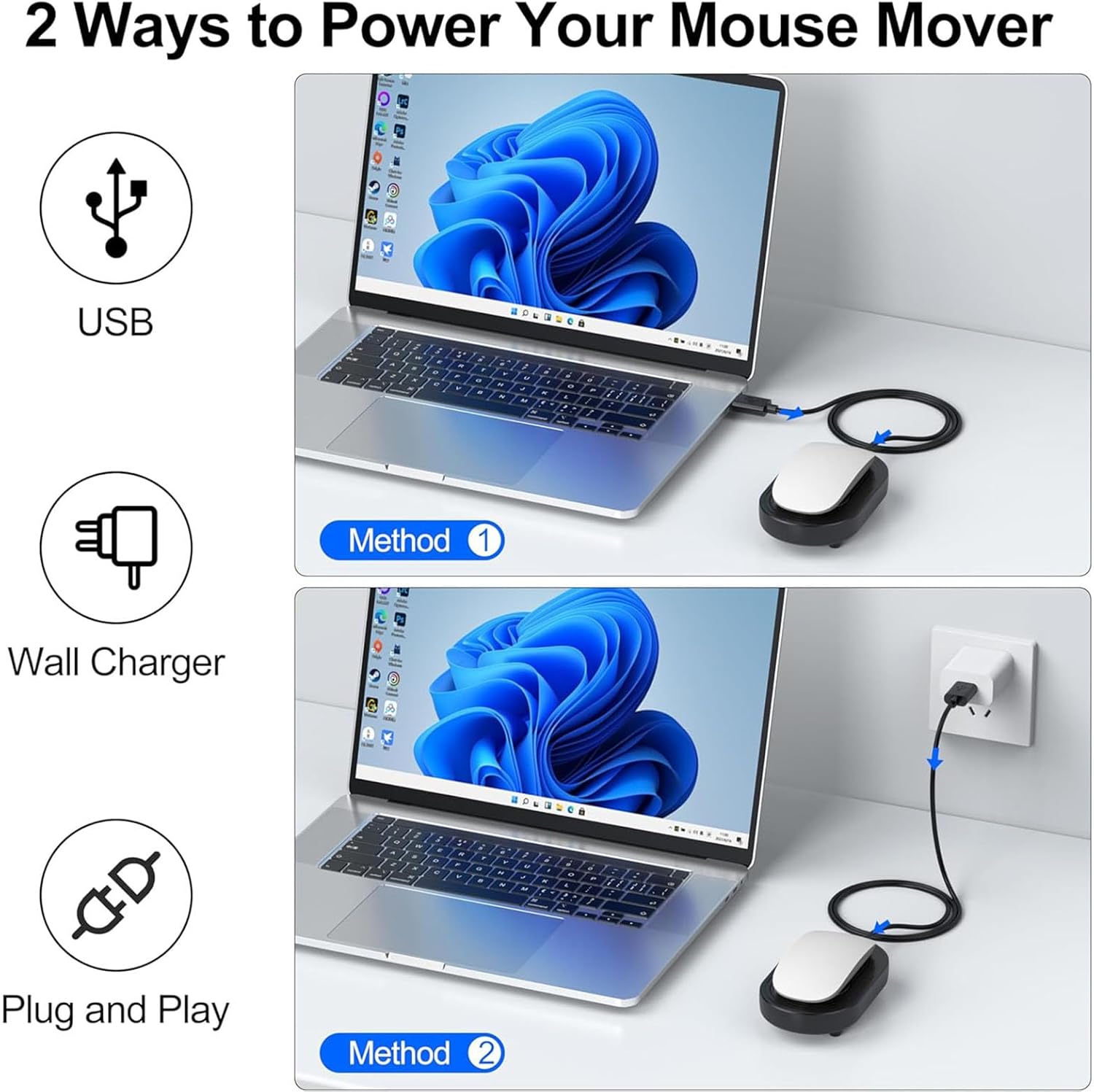 【Ultra-Silent & Long-term Durability】After a long time of repeated tests and customer trials, here comes the AZTCLIGHT new version mouse mover jiggler, which is more stable and durable than others on the market.Built-in silent type motor, our computer mouse jiggler only emits less than 25 dB of subtle sound while running.