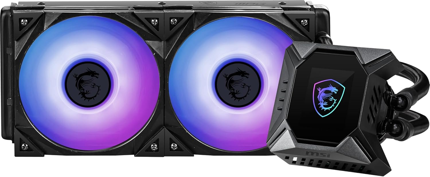 MSI MPG CORELIQUID K240 V2 AIO CPU Liquid Cooler – LCD Pump with 60mm Fan, 2 x 120mm ARGB Fans, Evaporation-Proof Tubing, GI Cooling & Mystic Light Software Support – AMD & Intel Socket Compatible