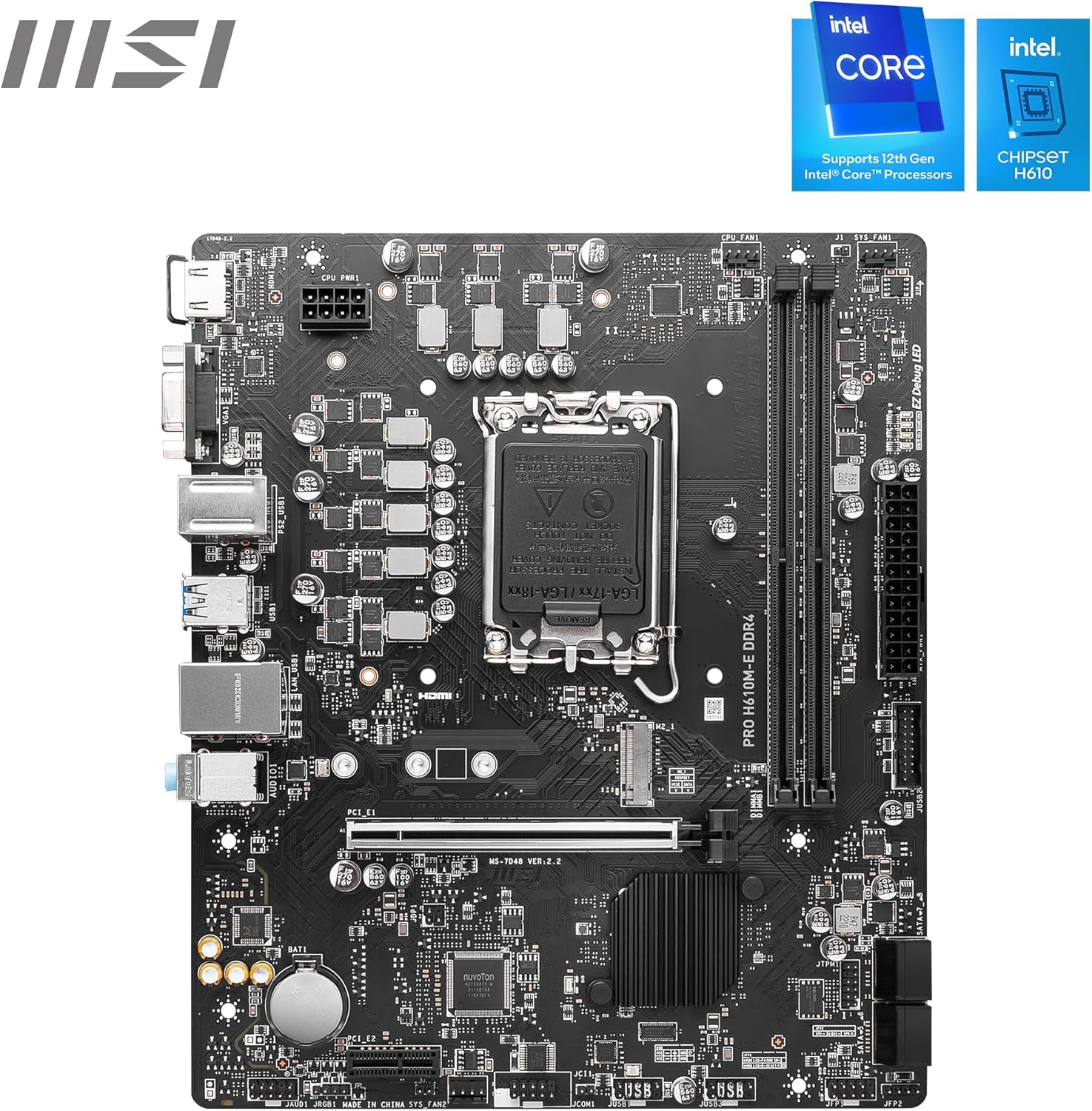 12TH GEN CORE READY – The PRO H610M-E DDR4 is a compact micro-ATX motherboard outfitted with the latest Intel H610 chipset (LGA 1700, 12th Gen Core ready); The VRM features MSI Core Boost technology for improved stability & peformance
