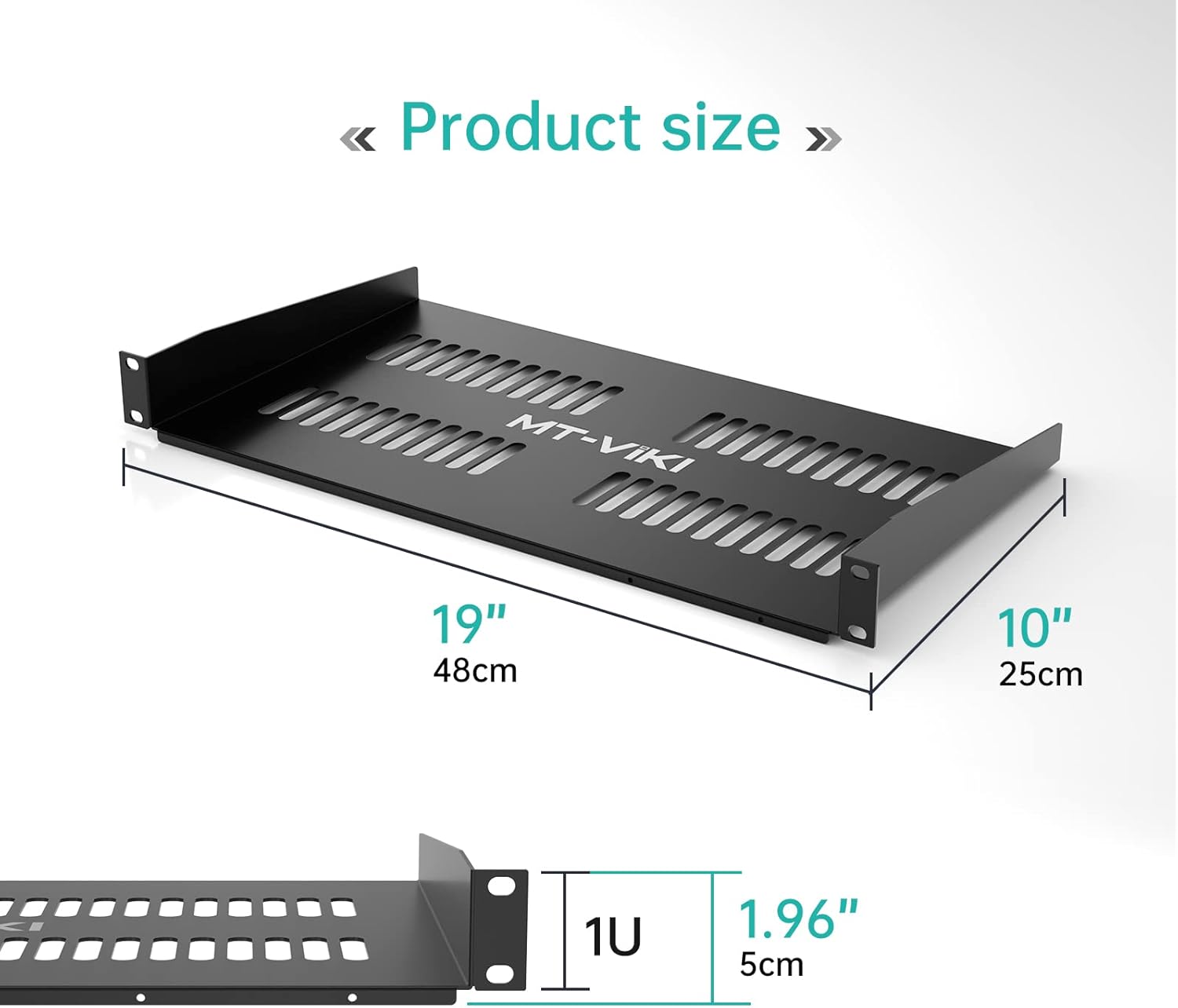 5 reviews for MT-VIKI 1U Server Rack Shelf 250mm deep- Universal Vented Rack Mount Cantilever Tray for 19 inches Network Equipment Rack & Cabinet -44lb/20kgWeight Capacity- Black – Sturdy (2 Pack)