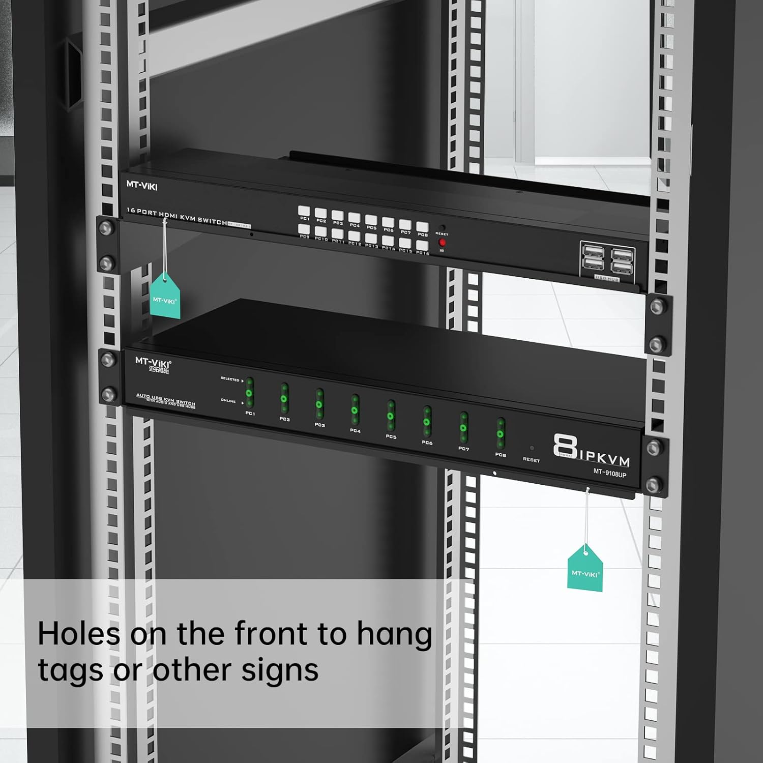 [Safe and Tidy] With the support of this rack shelf, all your machines or KVM can be securely placed in the cabinet, improving the safety coefficient. In addition, MT-VIKI specially makes a small hole in the front to hang the corresponding tag and help to find the target server host or KVM switch very fast.