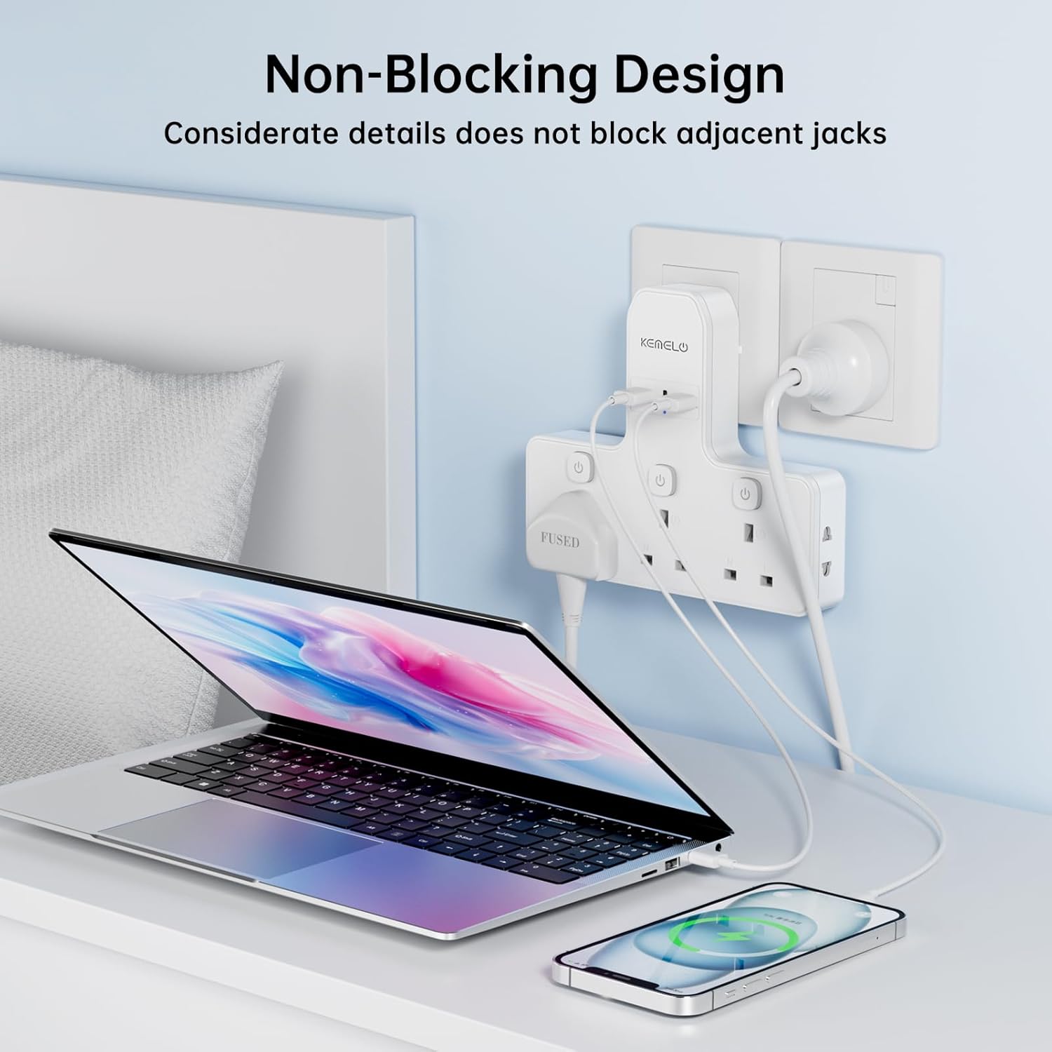 [Safe Extension Plug] – Safety is the first concern for our multiplug extension. multi plug adaptor built-in 13A fuse & Built-in safe door & surge protector & flame-retardant material, it ensures your electronic appliances are properly protected.