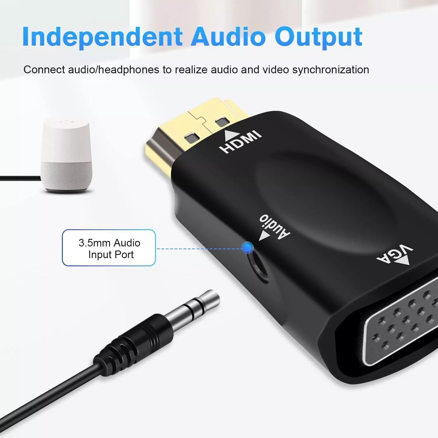 HDMI to VGA Adopter with 3.5mm Audio Cable 1080P HDMI to VGA Converter