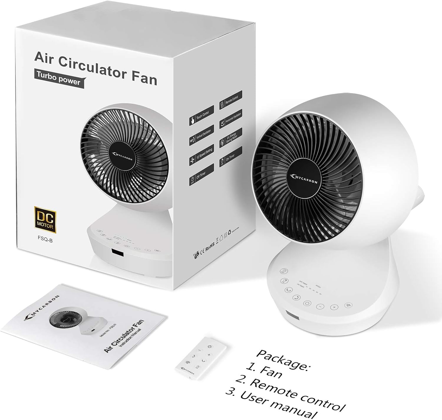 10 reviews for MYCARBON Quiet Fan DC Motor Desk Fans Turbo Wind Cooling Fans Air Circulator Oscillating Fan for Bedroom, 20dB Low Noise, Max 18W Energy Efficient, 12 Speeds, Remote Control