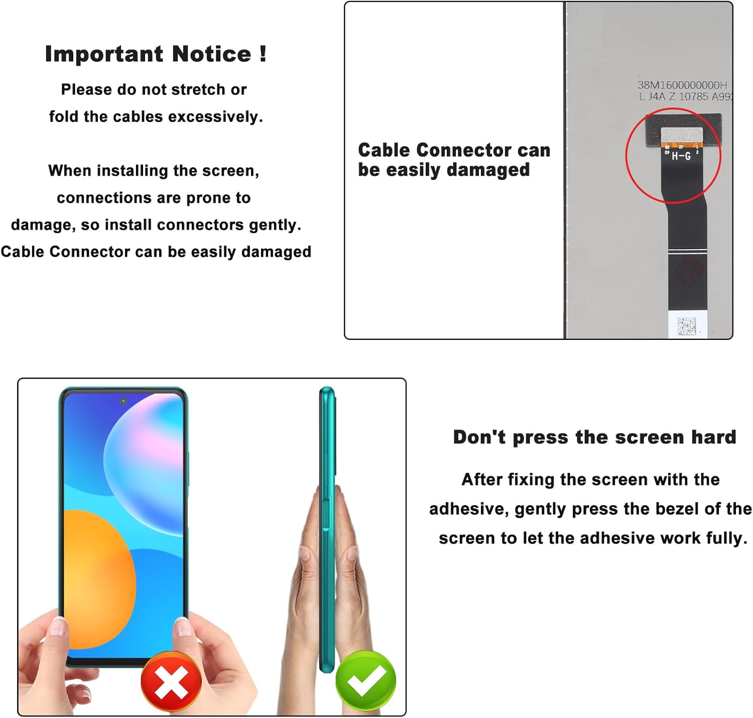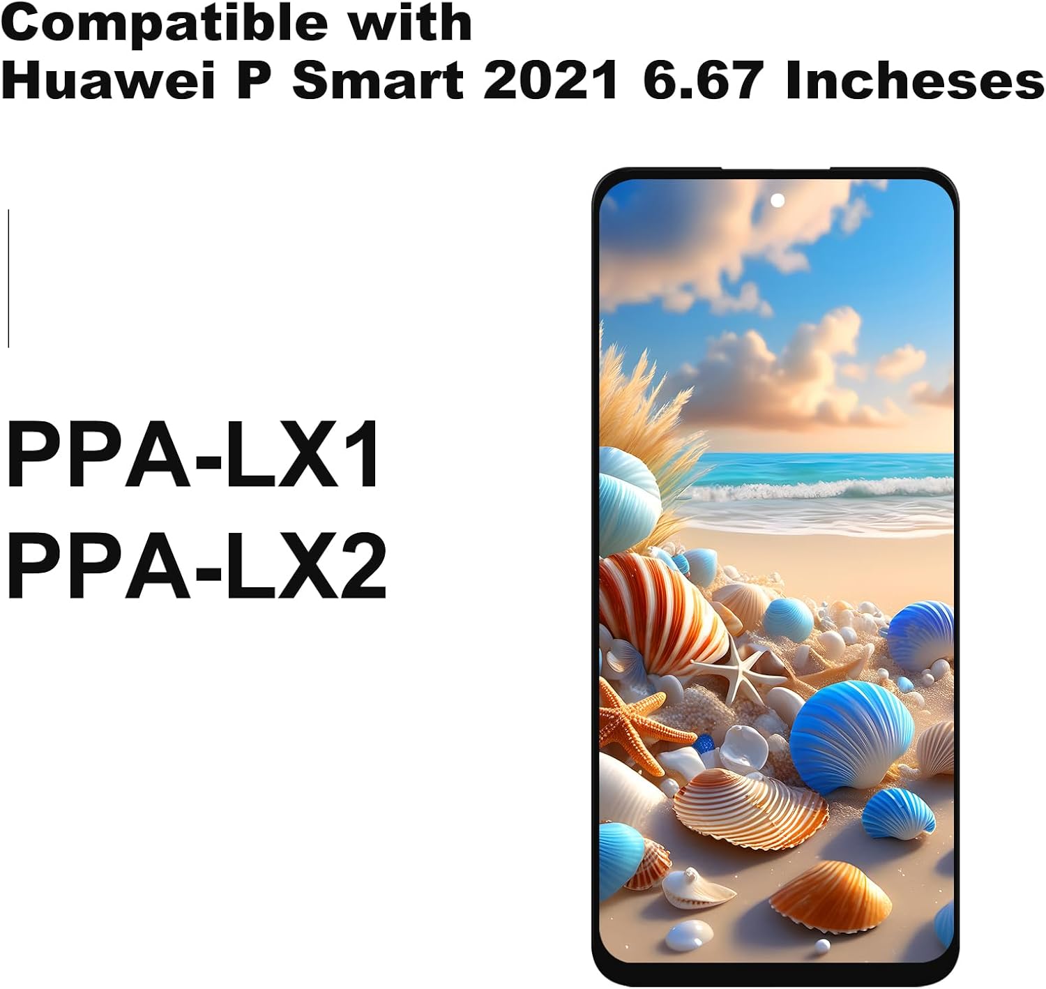 Compatible with Huawei P Smart 2021 PPA-LX1 PPA-LX2 Resolution 1080 x 2400 pixels Density 395 ppi Size 6.67 Inches Feature No Frame