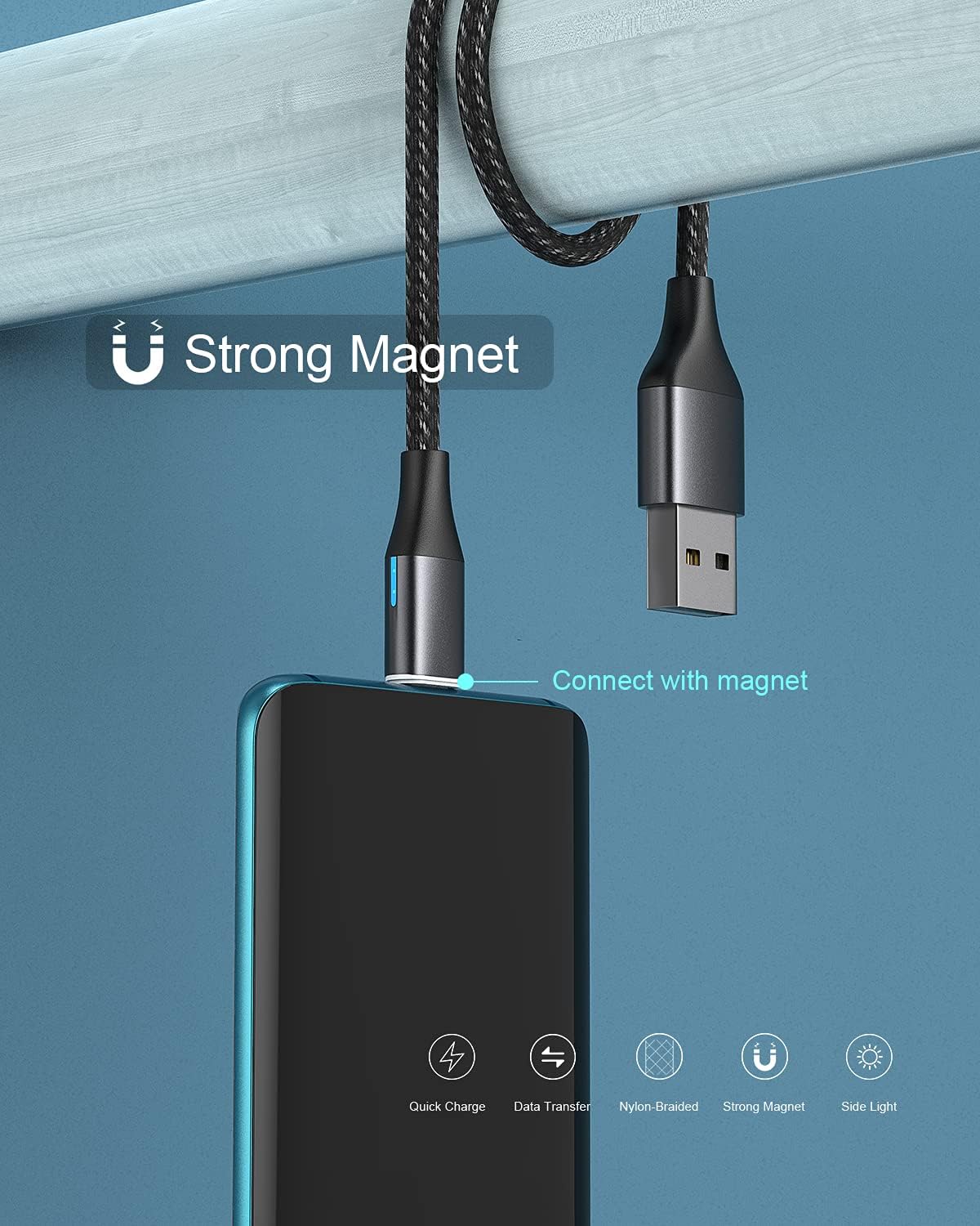 NetDot Gen10 USB-C Nylon Braided Magnetic Fast Charging Cable with Side LED compatible with Type-c Device