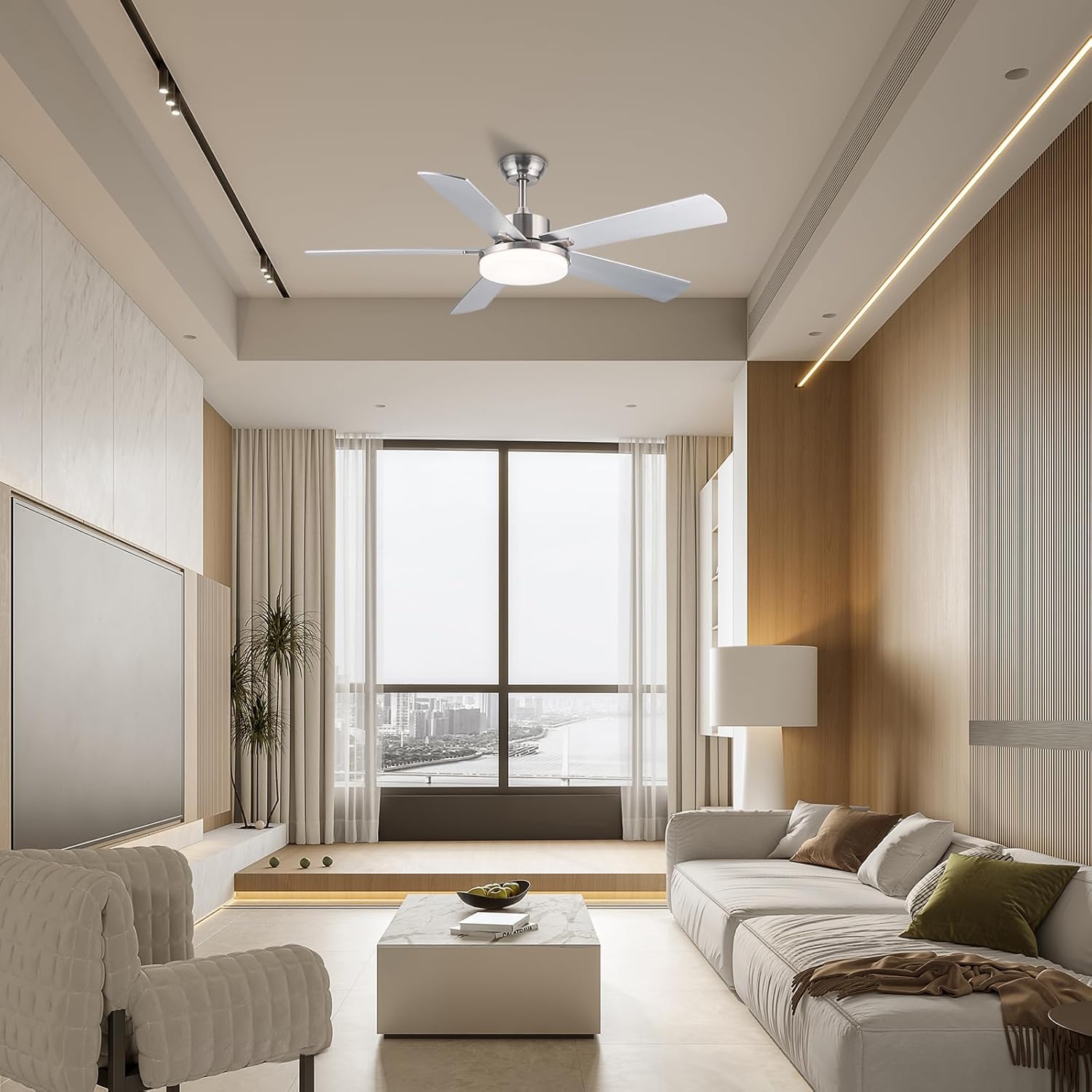 11 reviews for Newday 42” Silver Ceiling Fan with 5 Blades, Quiet Brushed Nickel Ceiling Fan with Remote Control for Bedroom, Reversible Ceiling Fan with LED Dimmable, Memory Function for Living Room