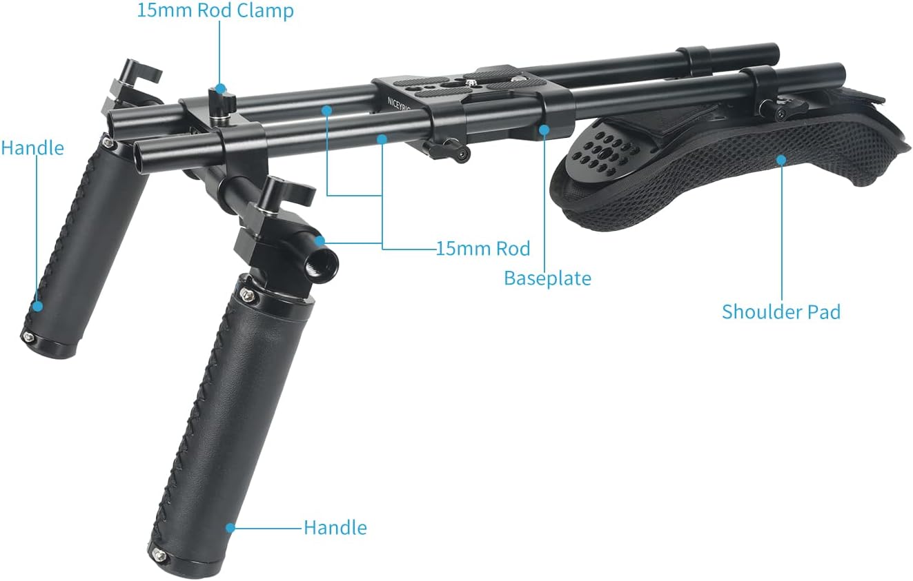 NICEYRIG Camera Shoulder Rig with 15mm Shoulder Pad Support System for DSLR Camera Cinema Camcorder, Mount Rig with Base Plate, Aluminum Alloy 15mm Rod, Handle Set – 435