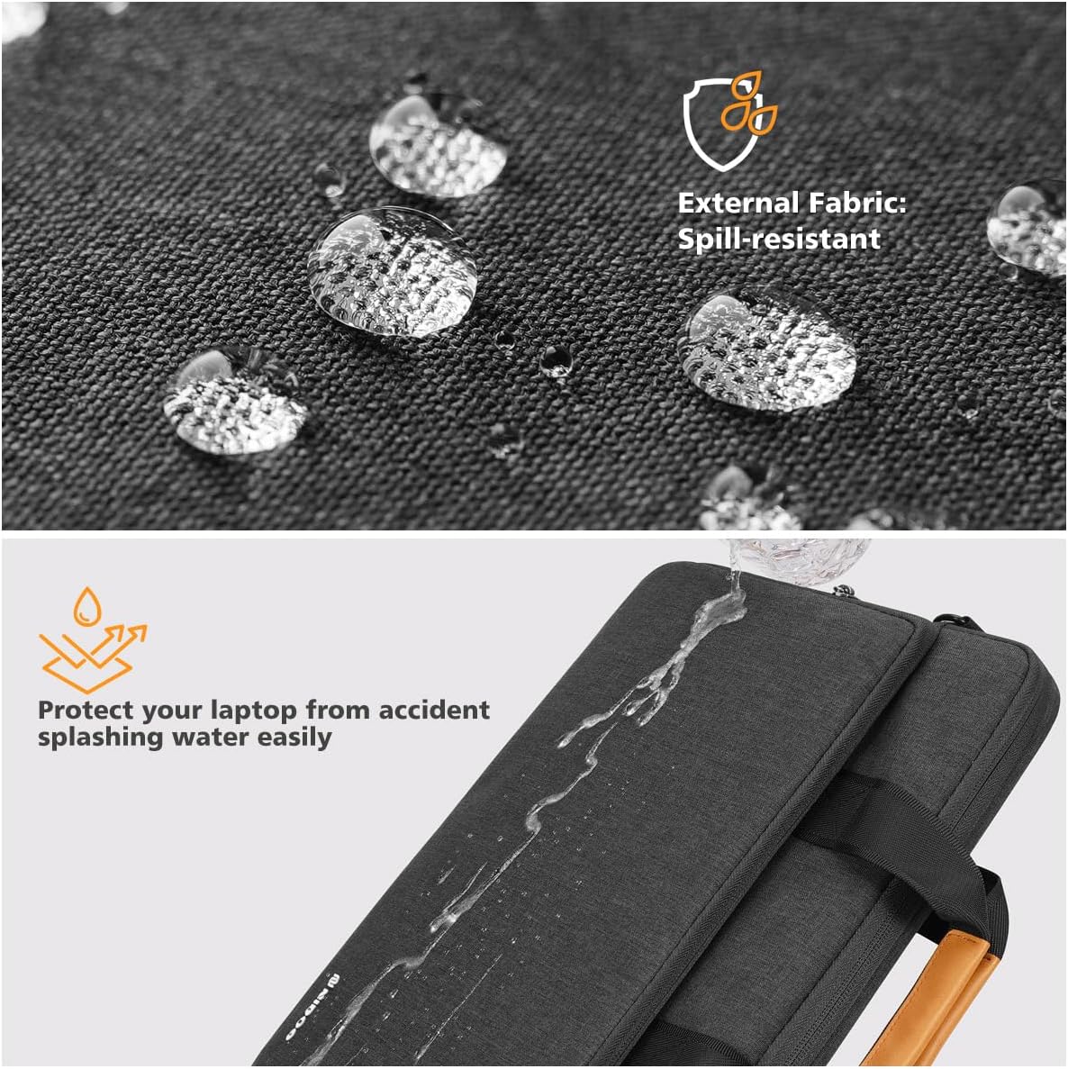 【Premium Material】The laptop shoulder bag is made of splashproof and durable fabric, which is wear-resistant & tear-resistant and can protect your laptop from accidental spills. The fluff lining inside absorbs bumps and shocks, protecting your notebook computer from dust, accidental scratches and scuffs.