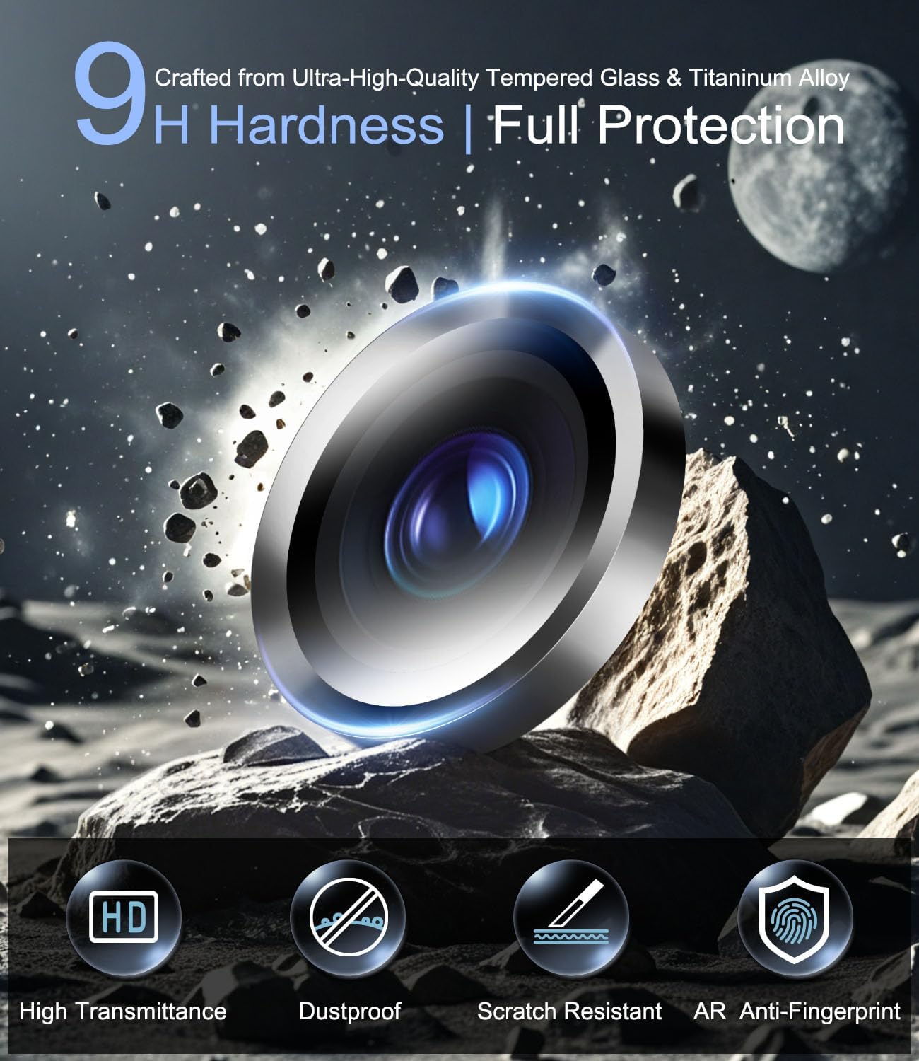 【Thorough Protection】Crafted with high-quality titanium alloy and tempered glass boasting a 9H hardness rating, this 16 Pro Max camera protector offers effective water repellency, oleophobicity, and fingerprint resistance, significantly enhancing durability and guarding against scratches, cracks, and impact damage