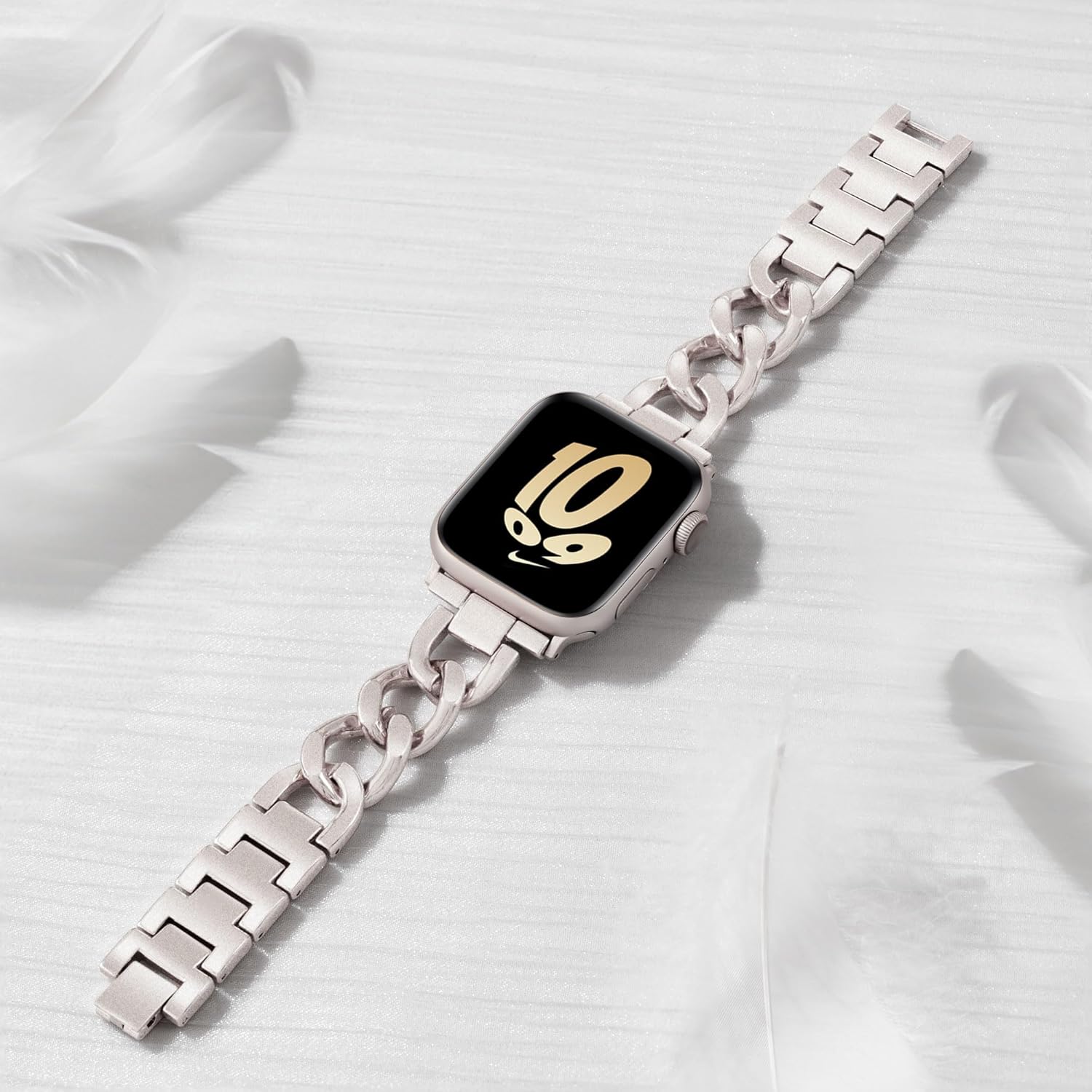 Ocaer Compatible with Apple Watch Straps 44mm 45mm 46mm 49mm 42mm, Chain Metal iWatch Strap for Apple Watch Ultra 2/1 Series 10 9 8 7 6 5 4 3 2 1 SE, Slim Apple Watch Bracelet Band Women (Starlight)
