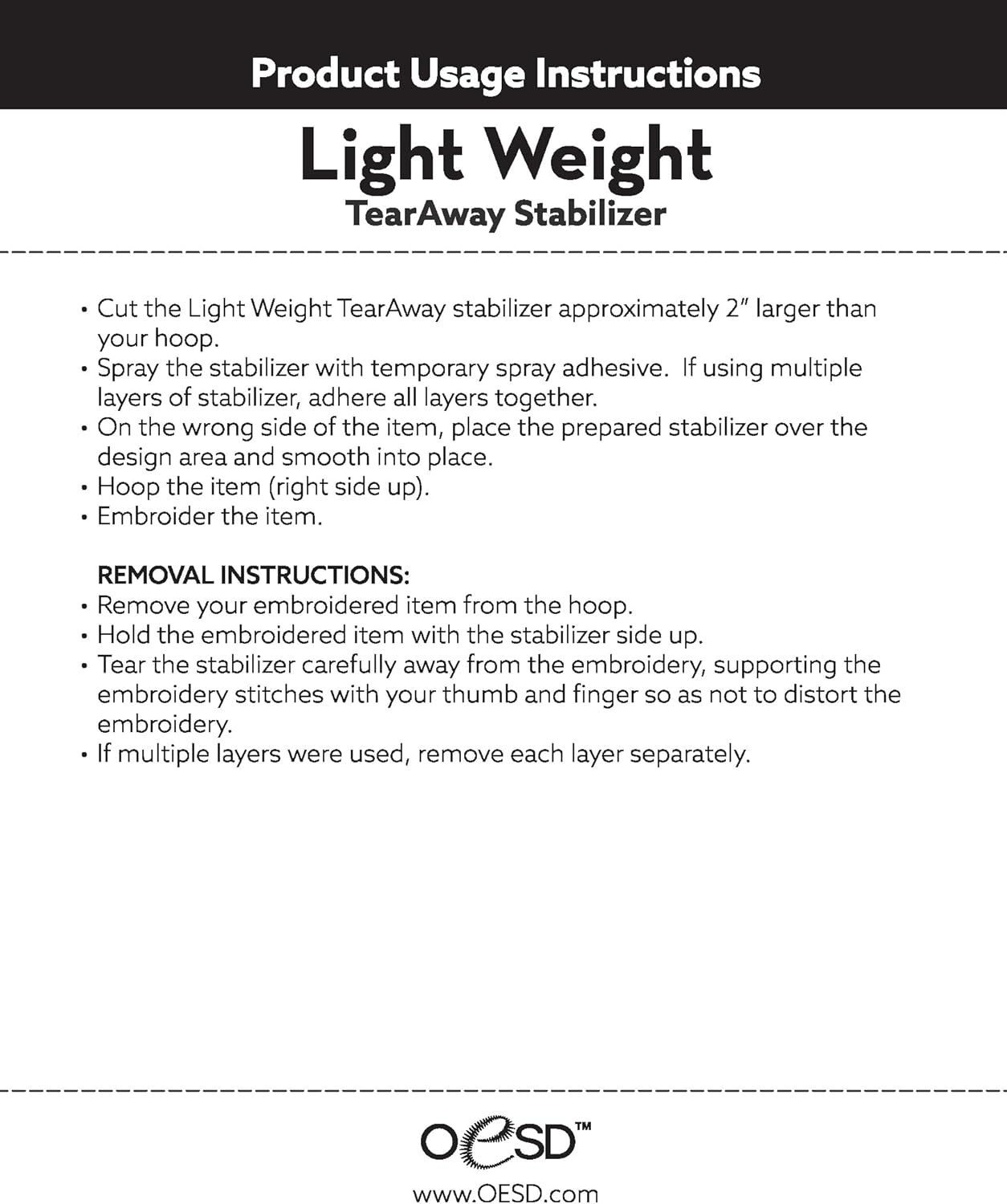 Oesd Light Weight Tear-Away Embroidery Stabilizer 1.5oz 10 x 10yd