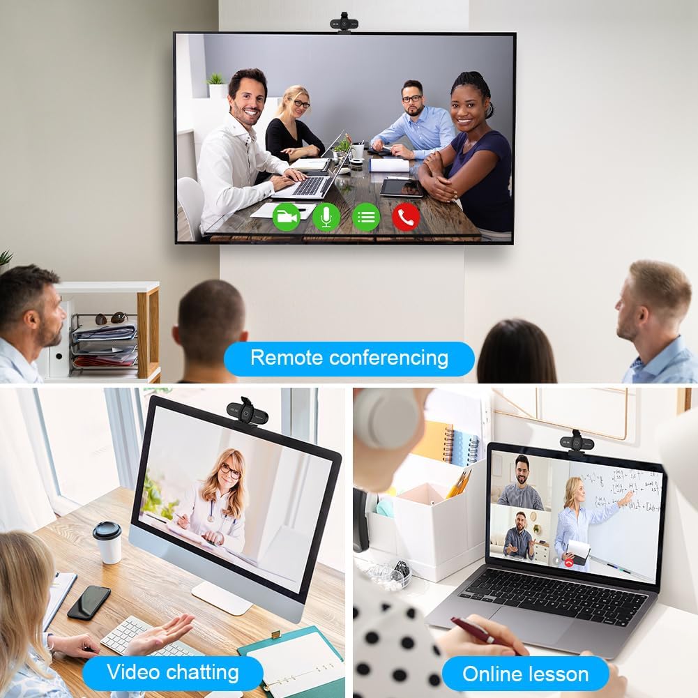 【HD Quality】This webcam supports 1080p, 2k, and 4k HD resolutions, providing clear and detailed video images. Even in dim or poorly backlit environments, faces can be clearly seen, meeting the image quality needs of different users. The ultra-wide-angle lens can record clearer images without distortion.