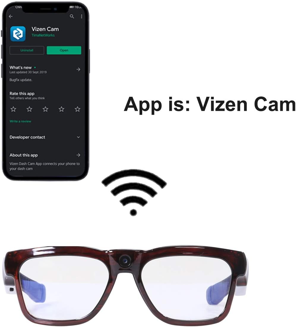 WiFi LIVE STREAMING FEATURE: Streaming Camera from Glasses to Mobile Phone by Mobile App through WiFi, App Name is “Vizen Cam” Avaliable for Android and iOS Phones, Enabling You to Playback, Delete or Download Video-only & Photos from Glasses to Phone, Share Photos / Video-only to Social Medias. It is Very Convenient When You are Outside Without Computer to Download Video-only Information