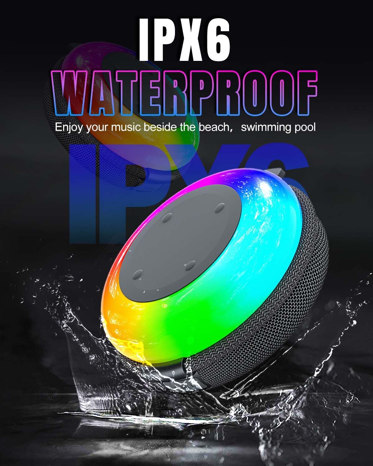 [Dazzling RGB Light Effect] Built-in Dazzling RGB lighting system, you can short press to switch the colour and long press to switch the light on and off. The lights change with the rhythm of the music, giving you a more immersive audio-visual experience. Whether you are at a party, camping, beach, or family entertainment, RGB lights add more fun and atmosphere.