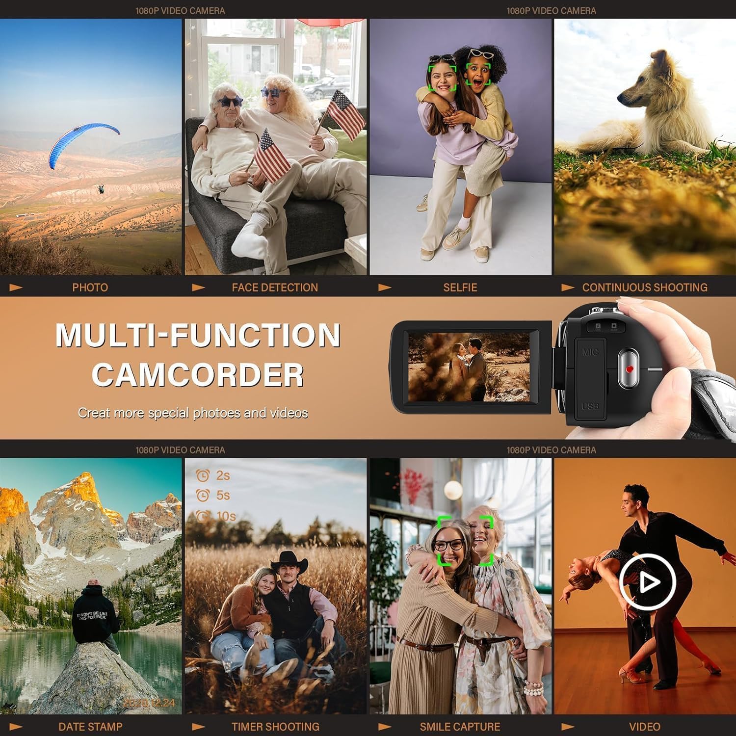 Crisp Clear Videos: Capture sharp 1080P HD video with 30MP photos thanks to the powerful 18X digital zoom and advanced sensor of this compact camcorder.