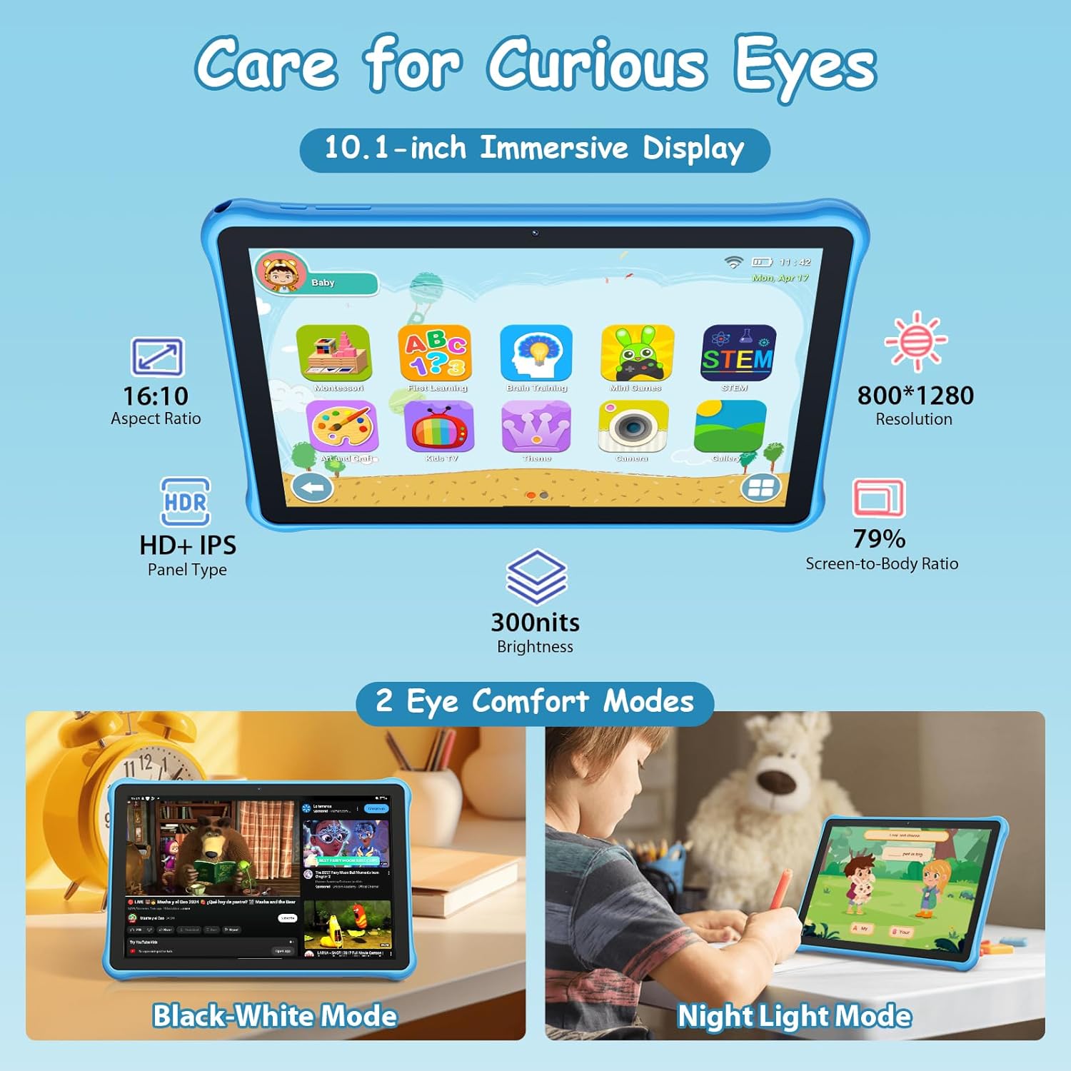 🎯【Android 13 & Empowering Features】🎁🎄🔥Tablets 6-12 years with Android 13, which focusing on greater personalisation, convenience and privacy, adapts to children’s growing imagination and curiosity, keeping them entertained and growing with the latest features and apps. Stopwatch encourage time management skills, Let kids track their activities and improve their sense of time. Bedtime Mode set a smoothing bedtime mode to help children wind down and prepare for a peaceful night’s sleep, which promotes healthy sleep habits designed to enrich your child’s daily routine. Timer can be used to schedule study sessions, screen time limits, or fun activities.