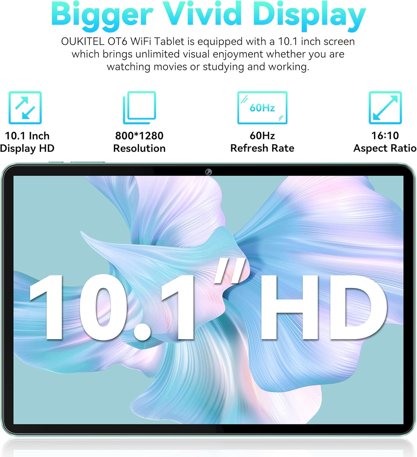 【8000mAh large battery and Android 14】OUKITEL OT6 10.1-inch tablet is equipped with an 8000mAh battery, which has an excellent 1250-hour ultra-strong standby performance and is equipped with Android 14 low energy consumption, which can be used uninterruptedly throughout the day. And the tablet supports 10W fast charging, which can be fully charged in 4 hours, so you can always keep it in use.