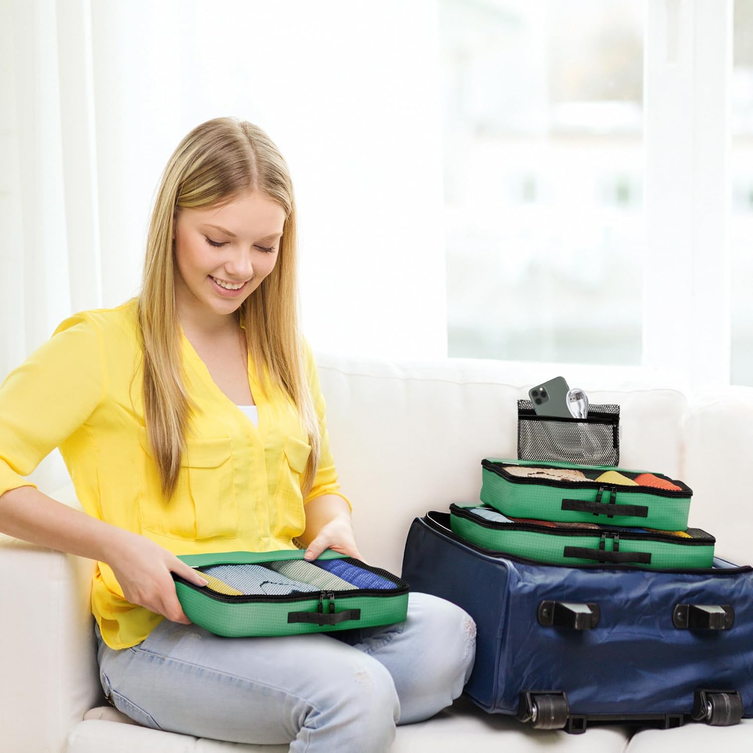 OW-Travel Easy to Organise Packing Cubes for Suitcases. 4 Large Travel Cubes and Zipper Organiser for Travel Bag Backpack Luggage.Travel Accessories Gifts Holiday Essentials. 5Pcs Green