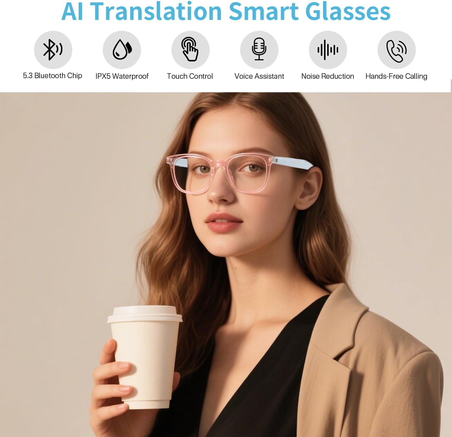 Elevate your daily routine with smart speaker glasses that do more than protect your eyes—they keep you connected. Designed for modern women who value both fashion and function, these smart glasses with bluetooth deliver crisp audio through open-ear speakers, letting you enjoy music or podcasts while staying aware of your surroundings. Why You’ll Love Them: Smart Touch Controls: Tap to adjust volume and play/pause music or reject calls—all without touching your phone. Anti-Blue Light Protection: These smart reading glasses block harmful blue light from screens and sunlight, reducing digital eye strain during work or scrolling. IPX5 Durability: Resist sweat, humidity, and light rain, making these bluetooth glasses for woman perfect for workouts, beach days, or sudden weather changes. Perfect for Everyday Adventures: ✔️ Stay Connected Hands-Free: Take calls or listen to GPS directions while cycling, jogging, or driving. ✔️ Capture Moments Instantly: Use the right touch zone to trigger your phone’s camera—ideal for vloggers or spontaneous selfies. ✔️ All-Day Battery Life: 4-6 hours of playtime (120hr standby) with rapid charging. Lightweight & Discreet: At just 27 grams, the frames feel barely-there, even during extended wear. Gift-Ready Packaging: Includes a premium hard case and microfiber pouch—perfect for birthdays or treating yourself.