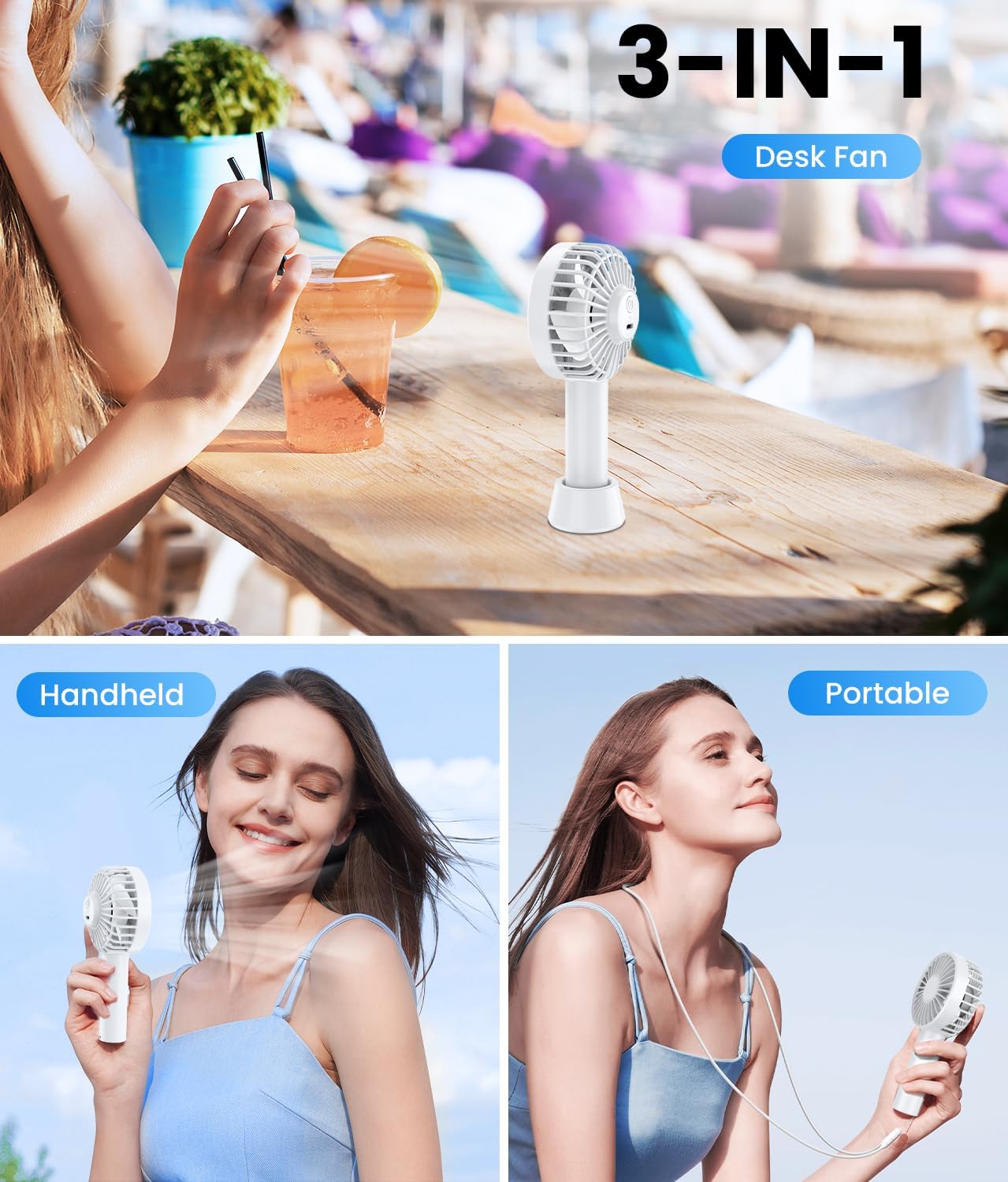 🎁 【Perfect Gift in Summer】- Electric fan handheld is small and portable, easy to carry as a travel fan. This portable fan is perfect for bedroom, office, dorm, home, library, camping, traveling or anywhere you need. A great summer fan for kids, men, women, family, and friends.