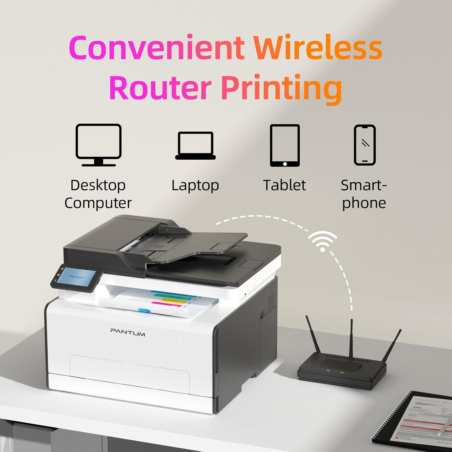 PANTUM CM2100ADW Colour Laser Printer, Wifi Auto Duplexer Printer with ADF,Print Copy Scan all in one, 20 PPM,Wireless/USB &/Ethernet, Portable&Lightweight, A4 Printers for Home Office use