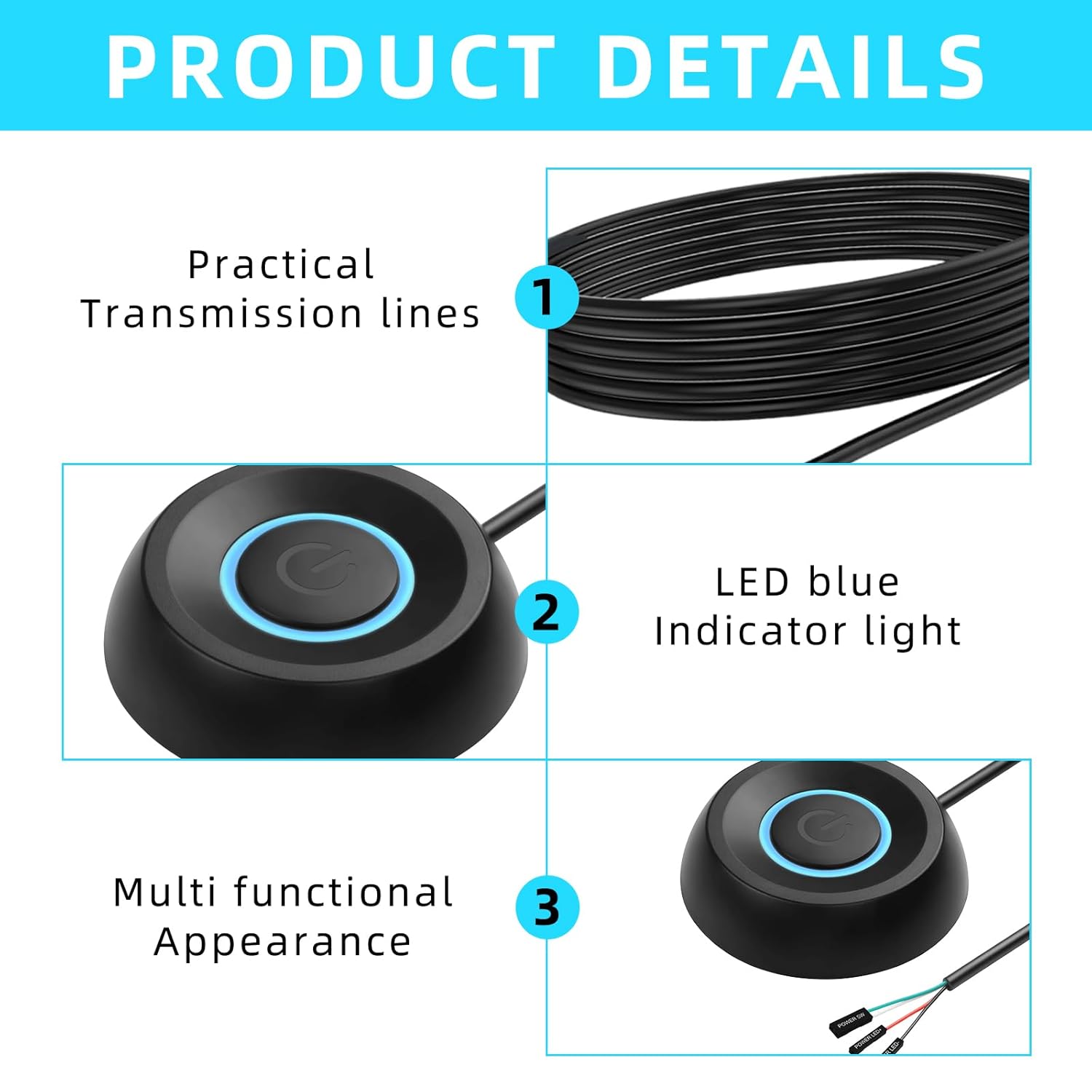 High quality materials: Pc power button is made of high-quality materials that are durable and long-lasting. Built in LED light, one click power on, LED light on, enriching your power on experience. It can be conveniently placed in a hidden location without taking up too much space.