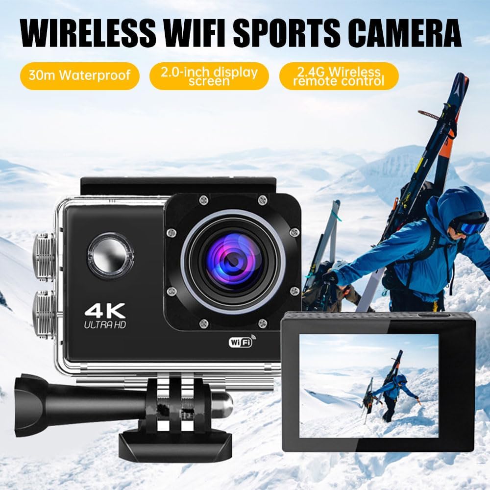 This 4K UHD sports camera features excellent 20MP shooting and a 6-layer optical glass lens to ensure clear and smooth image results. Equipped with a 2.4G wireless remote control for easy remote operation and an IP68 waterproof housing, it supports 30 metres of underwater shooting, making it suitable for a wide range of outdoor sports. Built-in WiFi and HDMI functions allow you to easily edit and share videos, and the dual-battery design extends the usage time, making it an ideal companion for adventurous activities such as scuba diving, skiing and cycling.