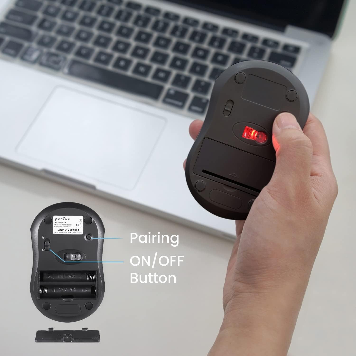 POWER SWITCH: Built-in on/off button and auto power saving to decrease battery consumption; Battery Life: 8 to 10 months (2 AAA batteries needed), Package includes: PERIMICE-802W and 24-month limited warranty (batteries not included in the package)