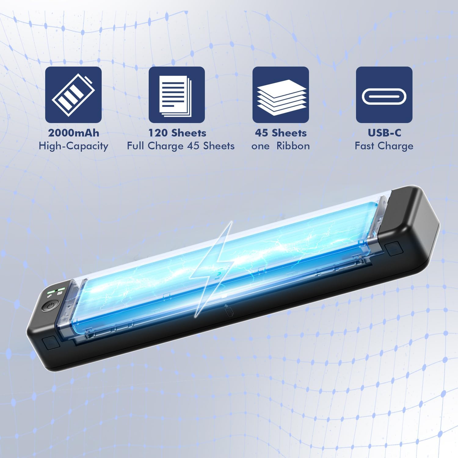 [Long battery life for uninterrupted work]: PhoFuta P831 protable printer internal 2000 mAh battery offers an exceptionally long operating time, with the ability to print around 120 documents once fully charged. This is particularly beneficial for users who are often on the move or working in places where a direct power connection is not available.