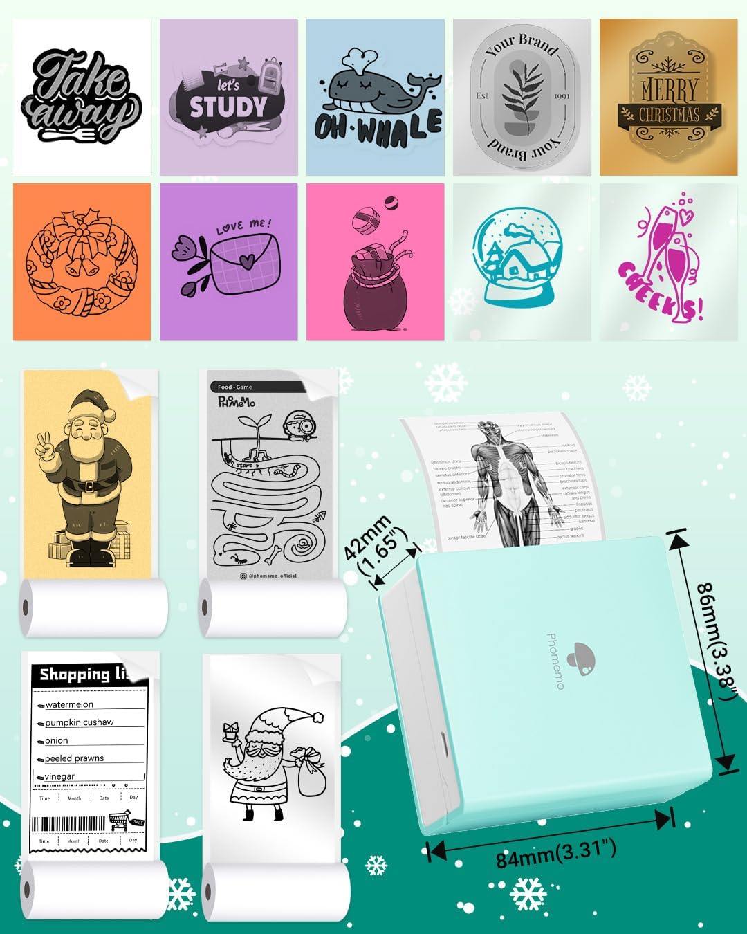 Portable Size and Fashion Design: pocket printer simple stylish shape, mini size (86x84x42 mm) slips neatly into your pocket. You take it anywhere. It’s ideal for Halloween, Thanksgiving day, Christmas and holiday present to child,family and friends