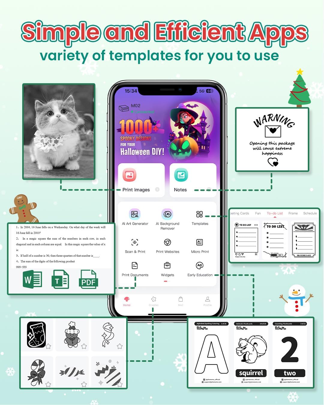 Multipurpose: Phomemo M02 portable mobile printer is better for company business, work plan, office assistant, memo, meeting notes, study notes, shopping list. Suitable for office, students, amateur archivists, treasure moms etc