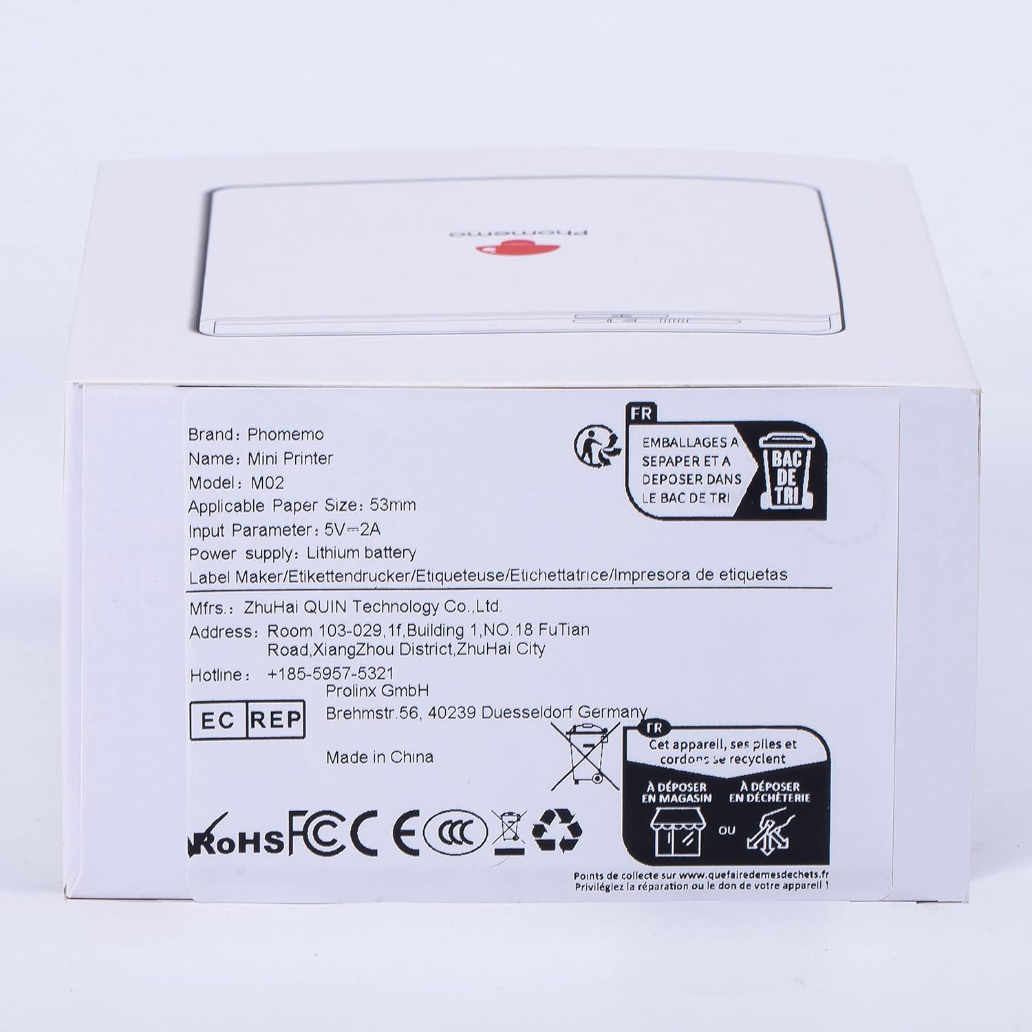Wireless Bluetooth Thermal Printer: for Android 8.0 and iOS 13.0 or above. Phomemo M02 pocket printer without ink toner or ribbon tapes, only print black and white. Special paper can be printed in blue. And can print transparent paper