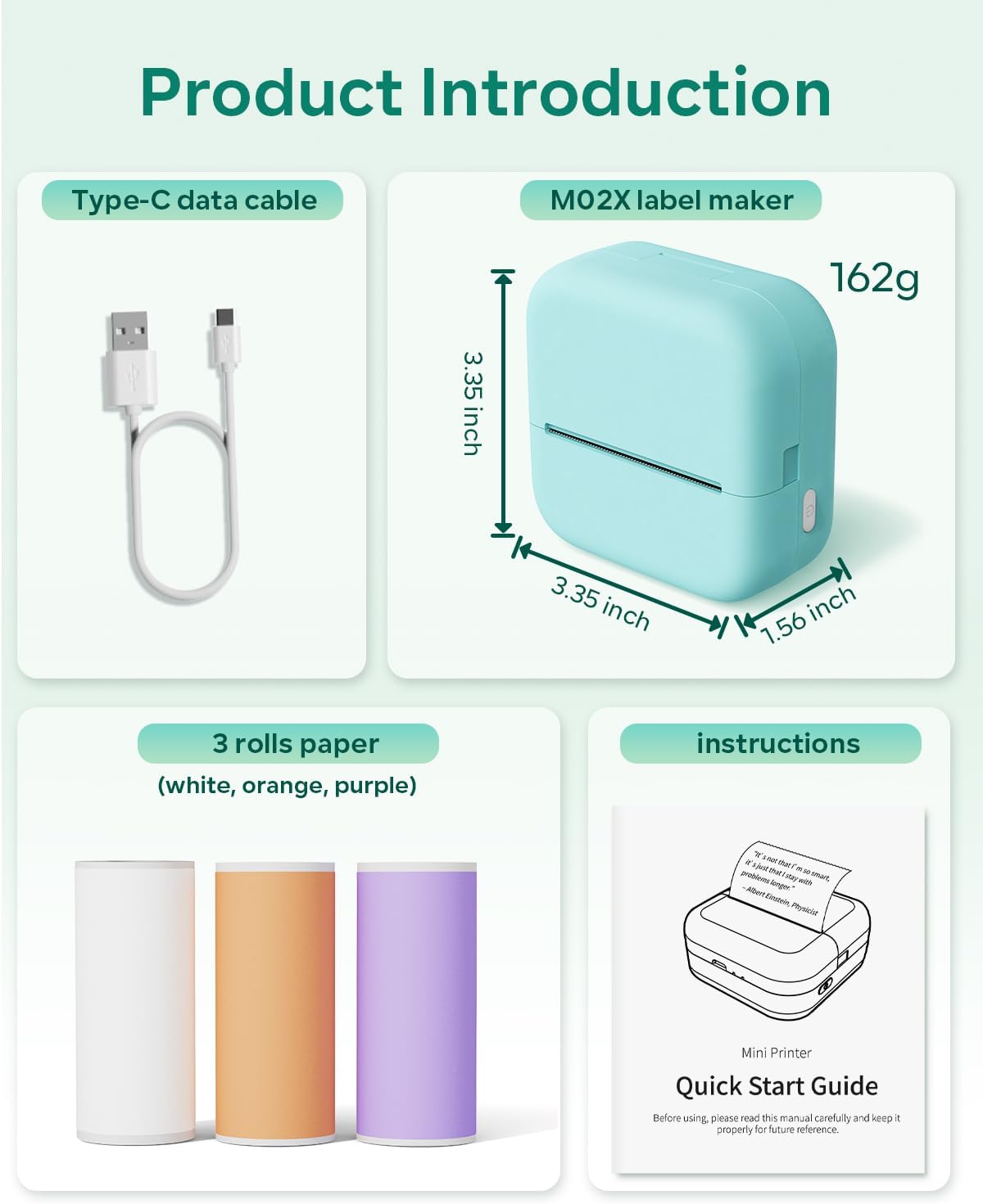 Multi-functional mini thermal printer: M02X small sticker printer machine is suitable for printing to-do lists, study aids, memos, lists, receipts, bookmarks, greeting cards, coloring pages, letter learning materials, card recognition, and more. It can be flexibly used in settings such as the office, home, DIY projects, and study environments