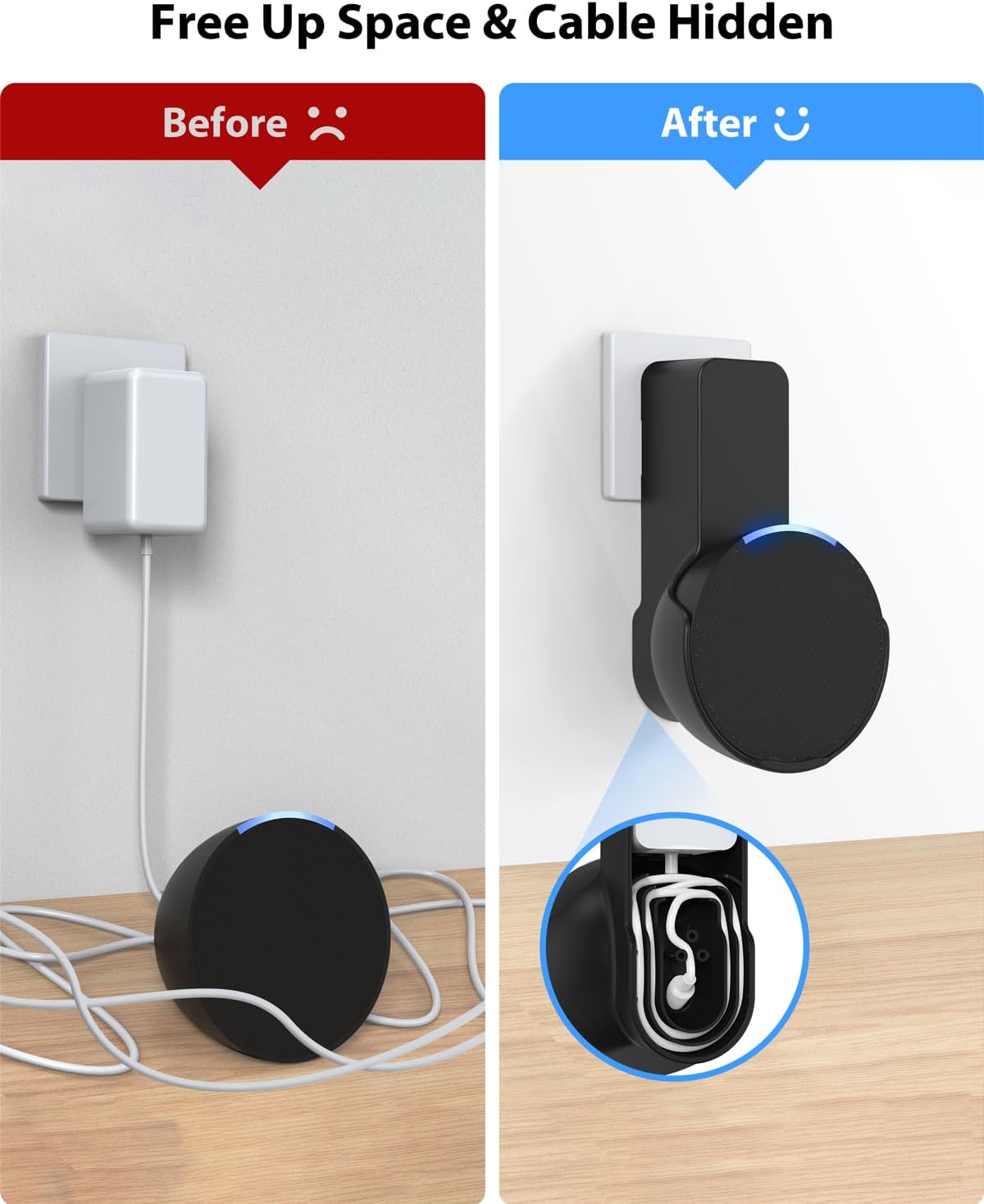 1. Space-Saving Design: Frees up valuable desk or table space by mounting your Ech-o Dot securely on the wall.