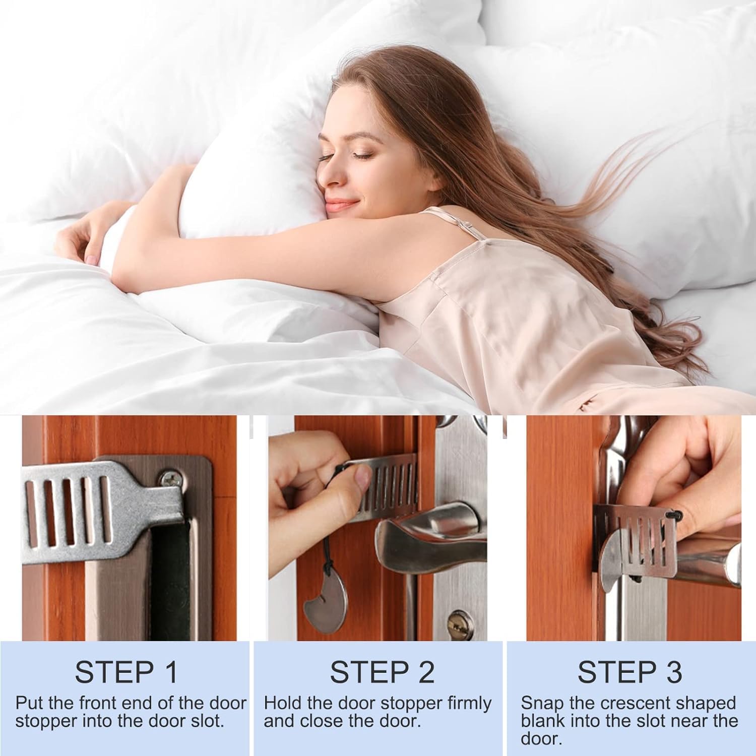 🚪🔒 Material: The portable door safety device is made of high-quality stainless steel, which is wear-resistant and fall-resistant, ensuring a long service life. High quality door lock design provides an extra layer of security.