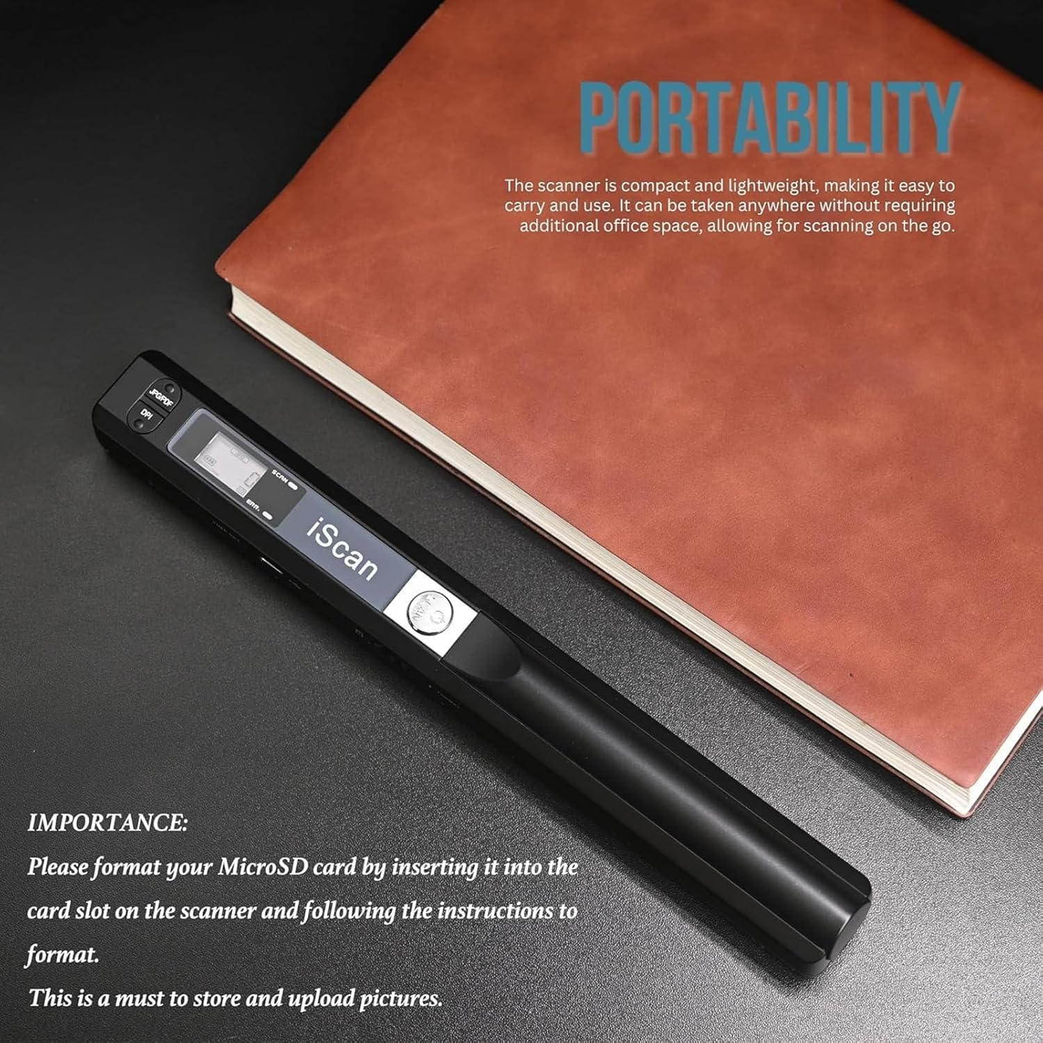 Portable Scanner, A4 Document Scanner, Photo Scanner with 16GB Memory Card, USB Connection for Computer, Black, LNKH09