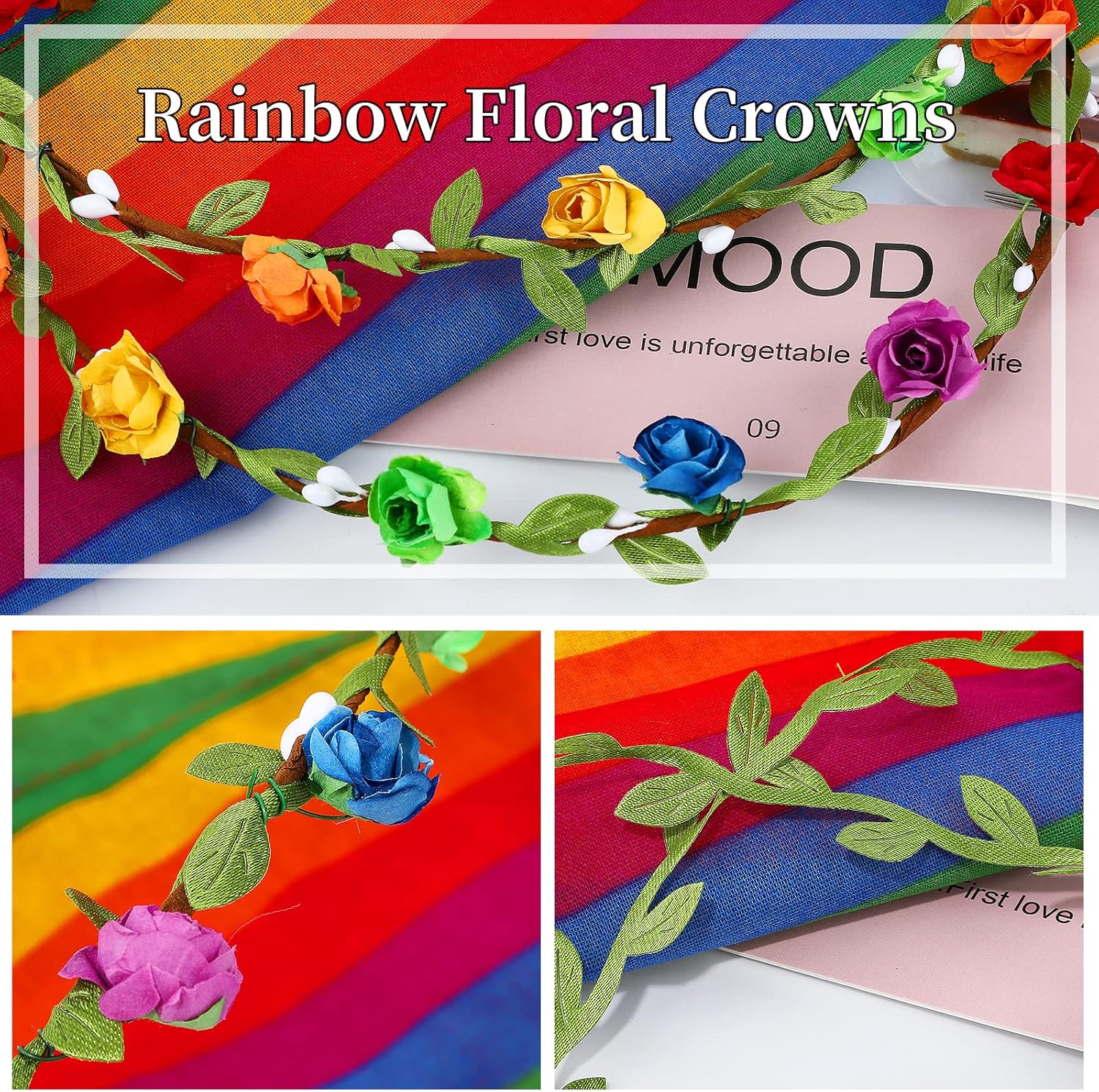 🌈【FLOWER CROWN PRIDE RAINBOW HEADBAND】: Small and fresh long willow leaf wreath, Rainbow flower design, suitable for wearing on pride day, expressing your hopeful and pride for the love. Believe love comes in many colors and fashions. And at the same time adding charm to your hair, it is also very suitable for daily life travel wear.