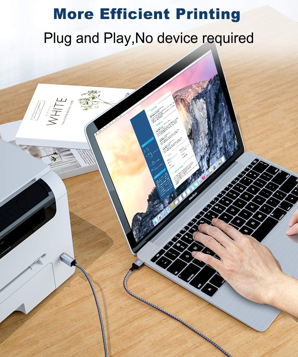 Nylon Braided Printer Cable: The printer cable is designed to seamlessly connect your USB Type B printers, scanners, fax machines, and other USB-enabled devices to your laptop or computer. With a USB A to B interface, this cable ensures a plug-and-play experience, eliminating the need for additional drivers. This USB B cable offers universal compatibility, making it a versatile choice for any home or office setup.