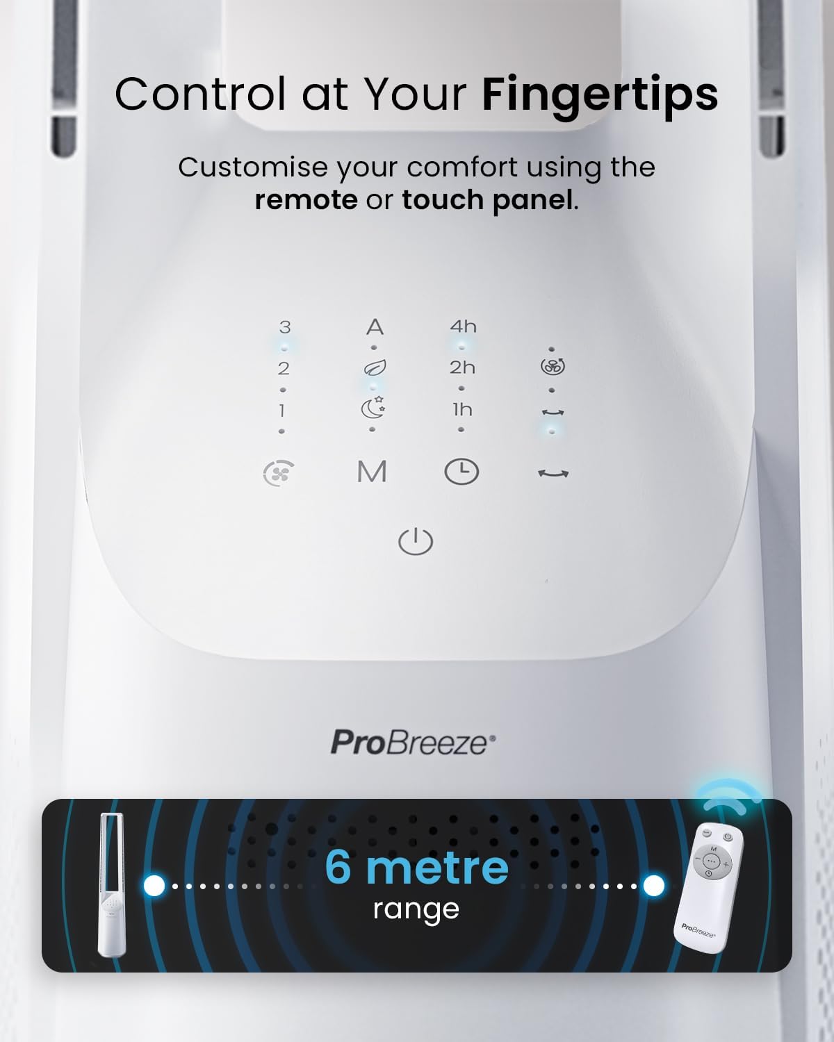 INNOVATIVE BLADELESS DESIGN: This powerful and ultra-safe Tower Fan by Pro Breeze features our innovative Air Stream Cooling Technology which amplifies cooling power to send a stream of cold air across your home, office or bedroom.
