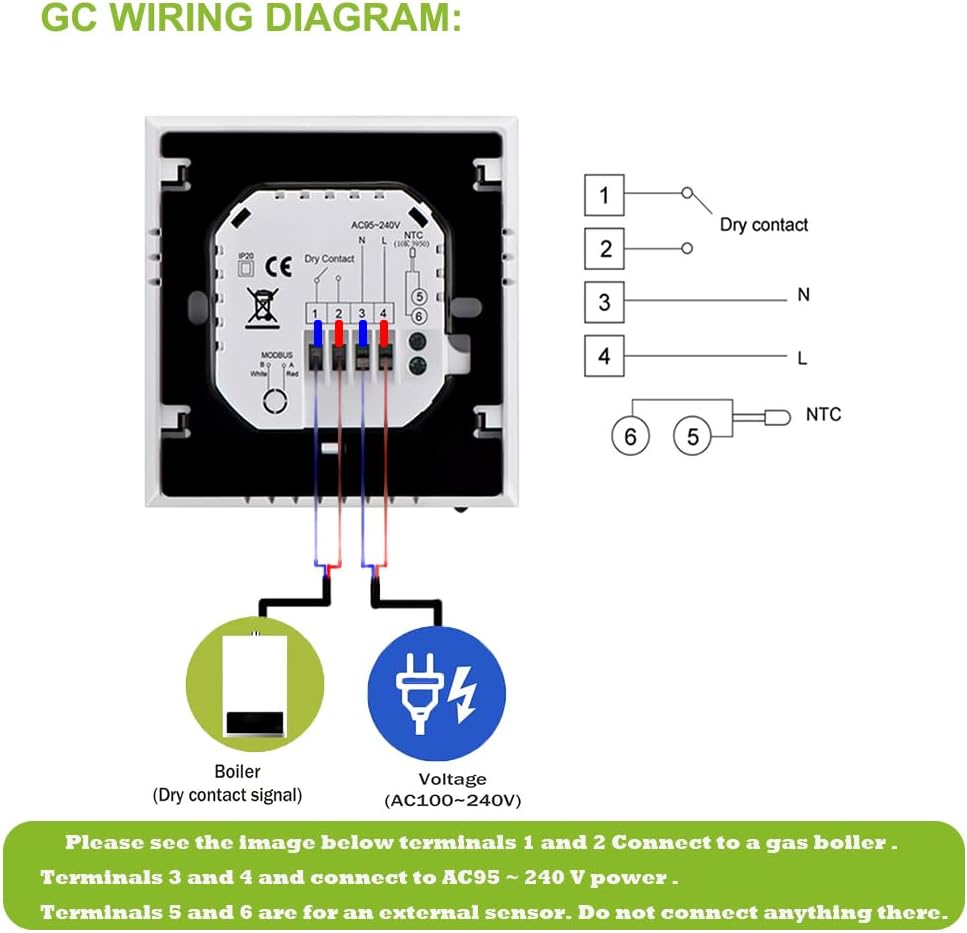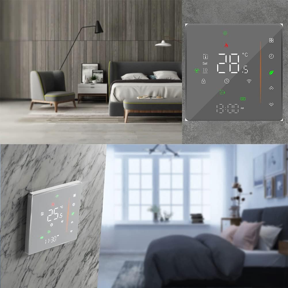 Qiumi Smart Wifi Color Thermostat for Individual Gas/Water Boiler Heating Works with Alexa Google Home Dry Contact, LED Light Display Protect Your Eyes, 5A 95~240VAC