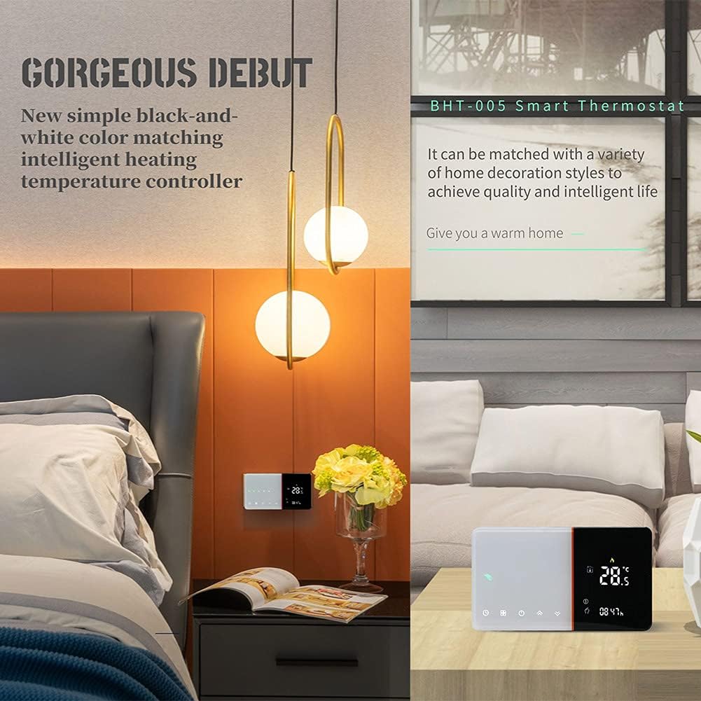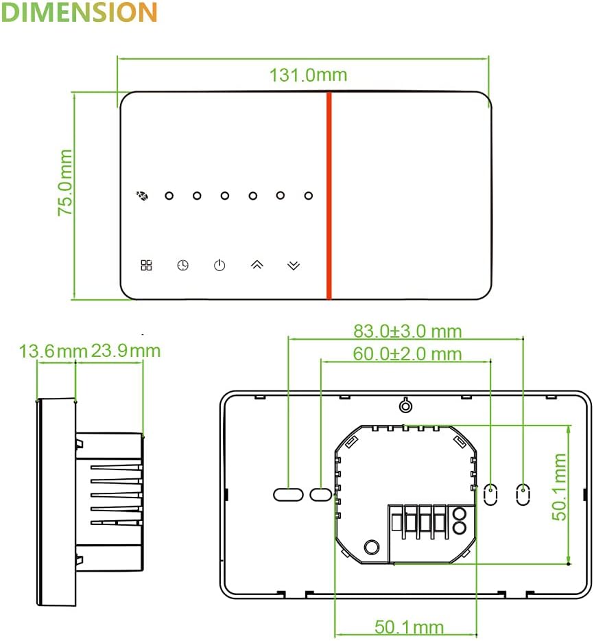 ☆ Unique design &enjoyable touch:Piano style sounds like a Chopin’s nocturnes 5D arc chamfer Hidden LCD screen Ultra-thin embedded panel, perfectly fit all walls. Great LCD temperature controller is easy and convenient to read-even in the dark. Easy Ul interface could be used even by child.