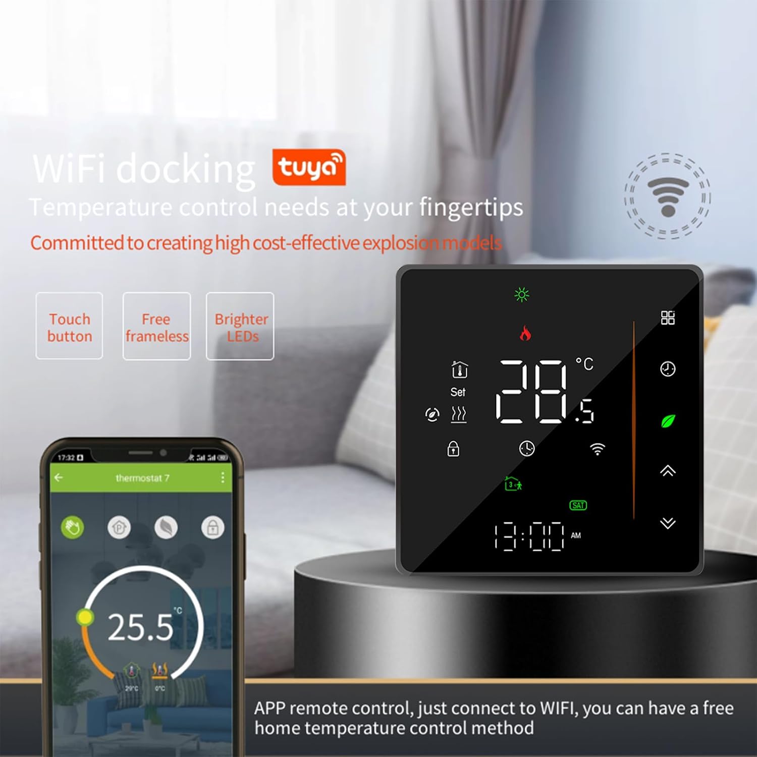 Qiumi Smart WiFi Thermostat Temperature Controller Smart Life Tuya APP Remote Control for Water Gas Boiler Heating Compatible with Alexa Google Home, 5A 95~240VAC