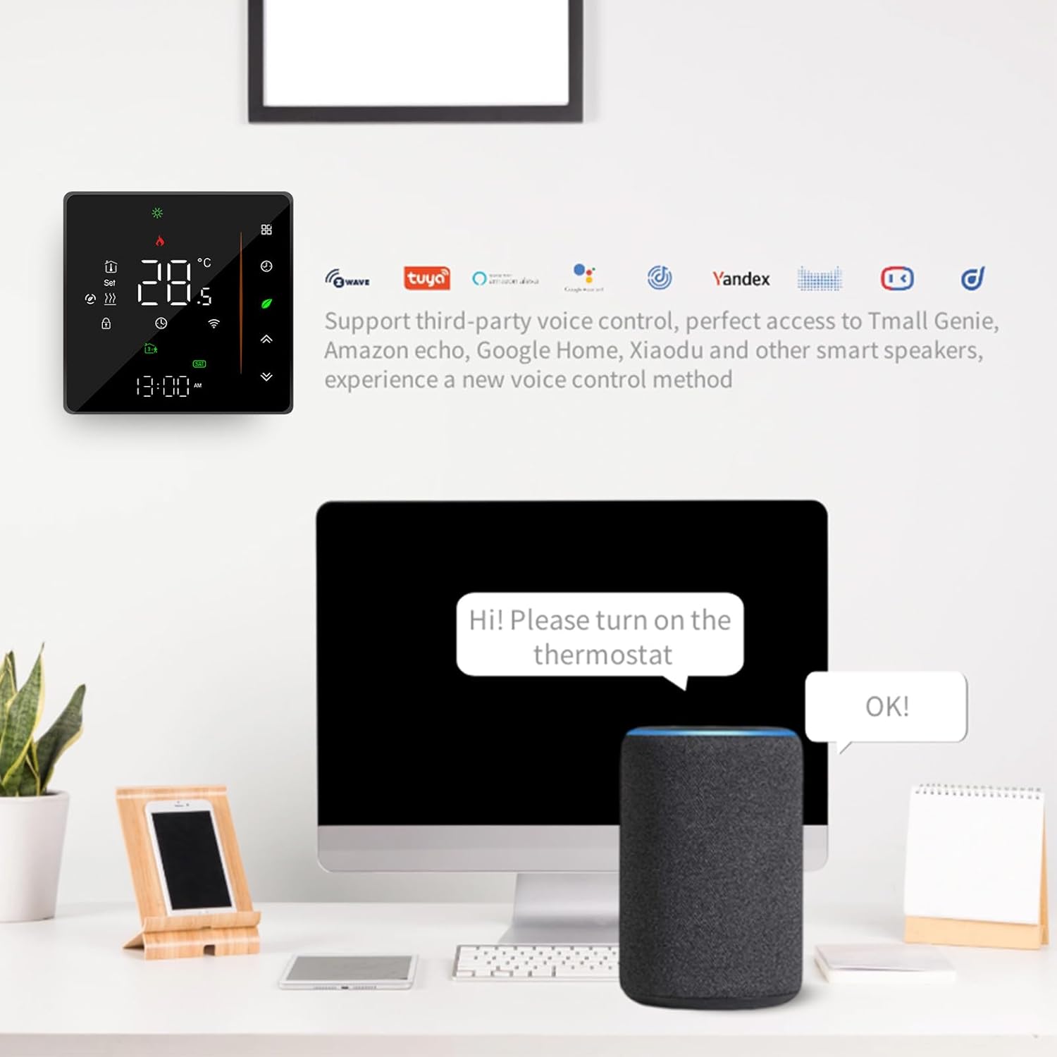 ☆Multi-Function:0.5°C Accuracy keeps temperature within the level you set. No limit to add rooms and support Smart Scene. The voice control thermostat supports power-off protection, date memory function when power is off and all setting languages synchronize your time zone, address and language. Voice control and shared device function enables centralized control or multi-channel control, providing utmost convenience to you and your family