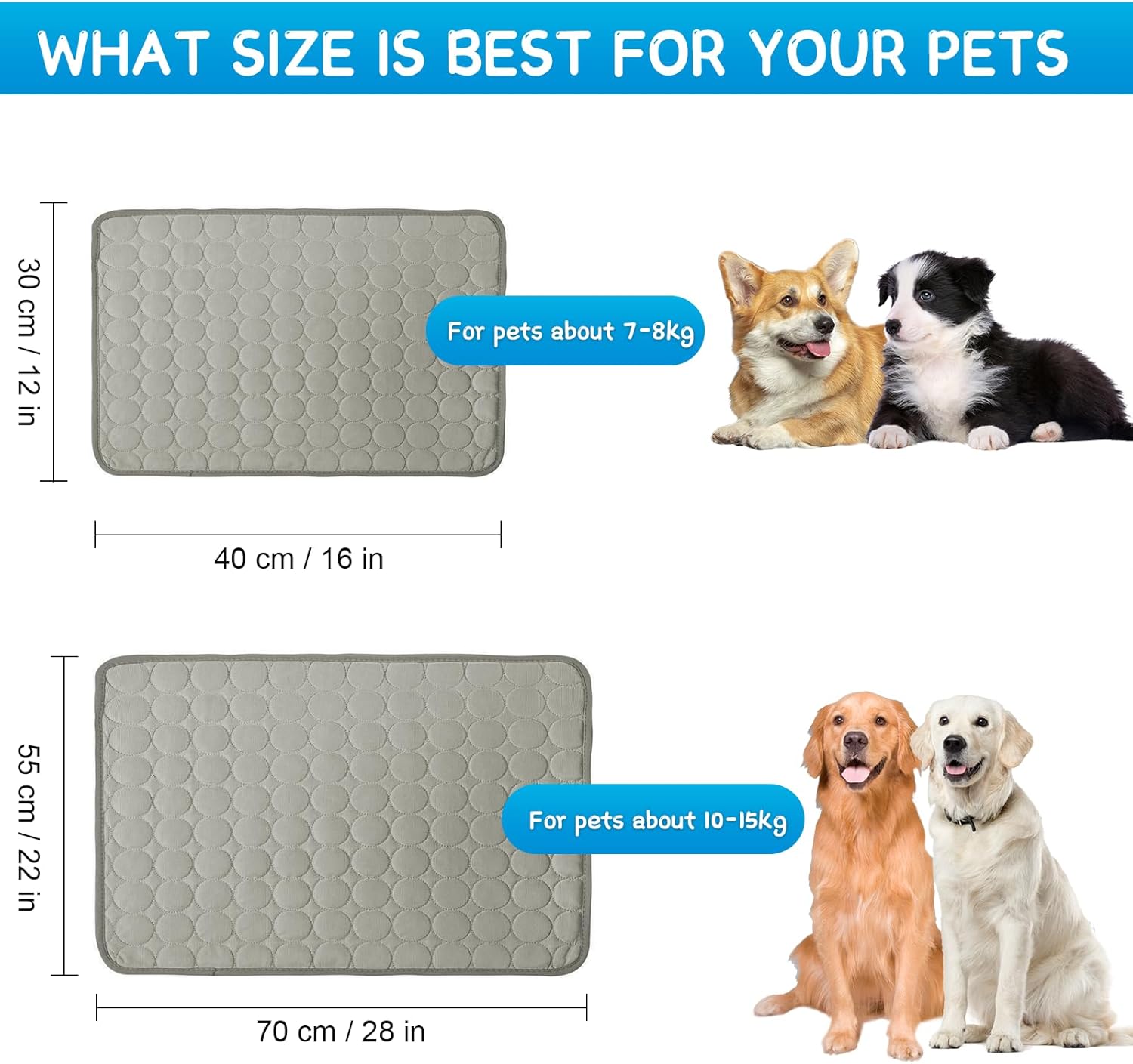 Qoosea Dog Cooling Mat Ice Silk Chill Pad, Soft Dogs Pet Self Cooling Pad, Non-Toxic Pet Cool Bed for Dog and Cat, Foldable Animals Summer Sleeping Mattress Heat Relief Mat (55 * 70CM Grey)