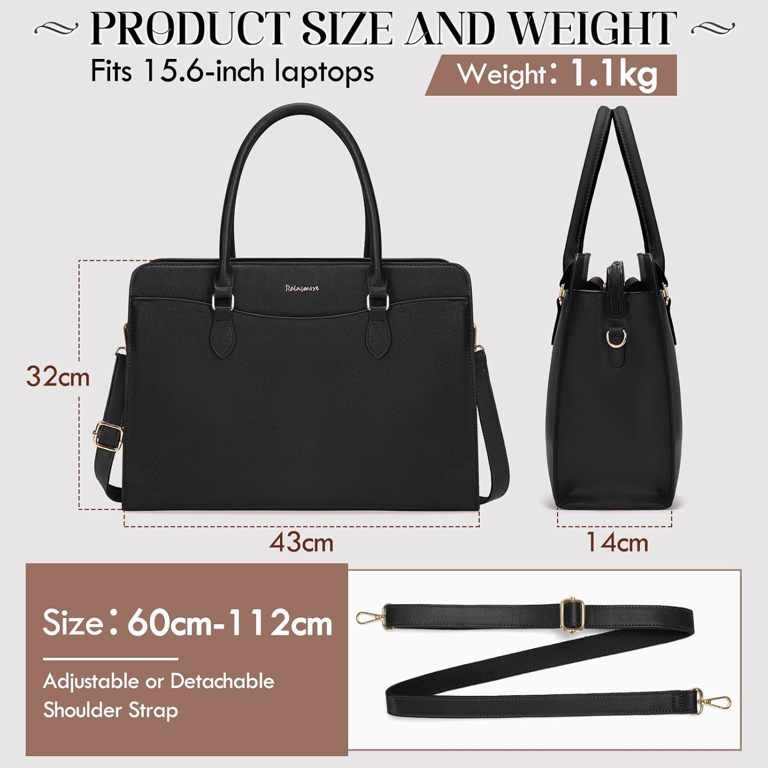 13 reviews for RAINSMORE Laptop Bags for Women 15.6 Inch Ladies Work Bag PU Leather Designer Laptop Handbag Large Laptop Tote Bag for School Computer Business Travel Black