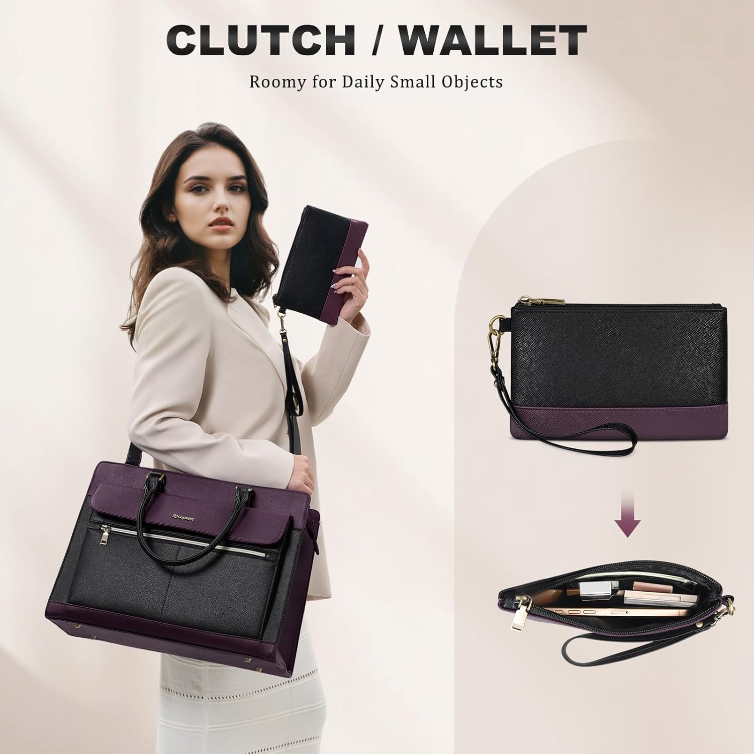 RAINSMORE Laptop Bags Handbags for Women 15.6 Inch PU Leather Large Tote Bag Work Bag with Clutch Bag Designer Women’s Bags Ladies Laptop Handbag for School Purple