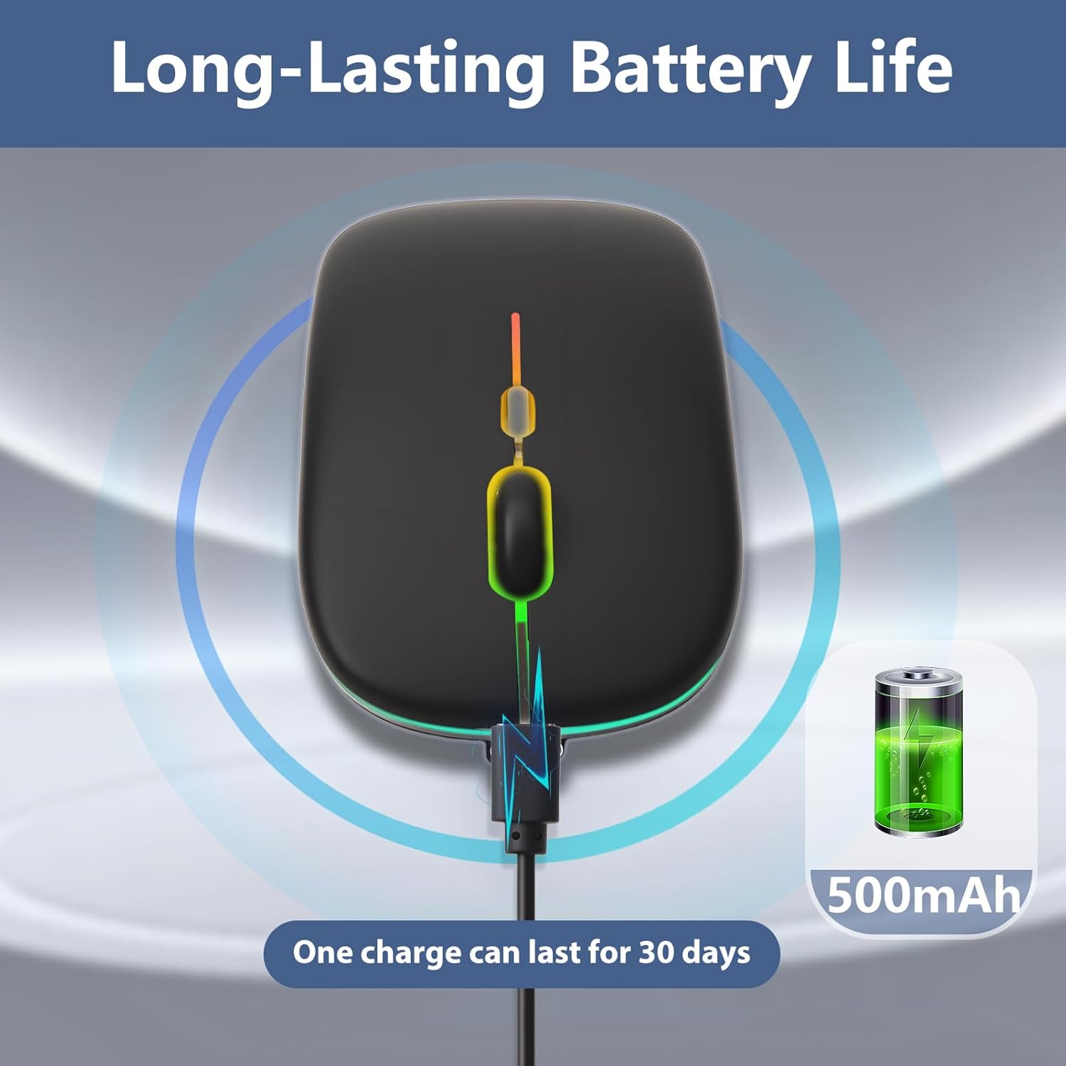 LED Colorful Light: Different colors change randomly, bringing soothing lighting effects, creating a cool and dreamy atmosphere for work and entertainment. 2.4 ghz mouse for laptop with ultra-thin portable design, black silent mouse saves space, usb mouse wireless can be easily put into a laptop bag and carried with you