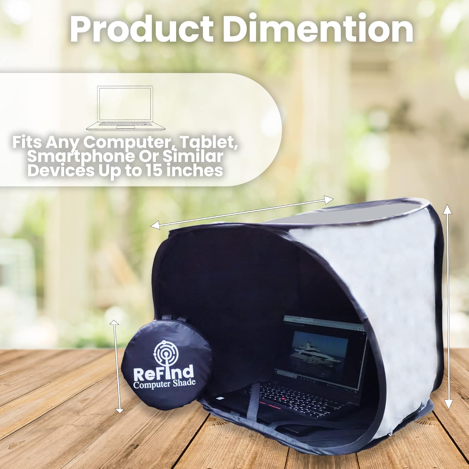 9 reviews for ReFind Computer Shade for Portable Anti-Glare Protection. Work Outdoors With Sunshade, Privacy, Heat Protection and Weather Shelter. Laptop Hood Accessory for MacBook, iPhone, Tablet, iPad